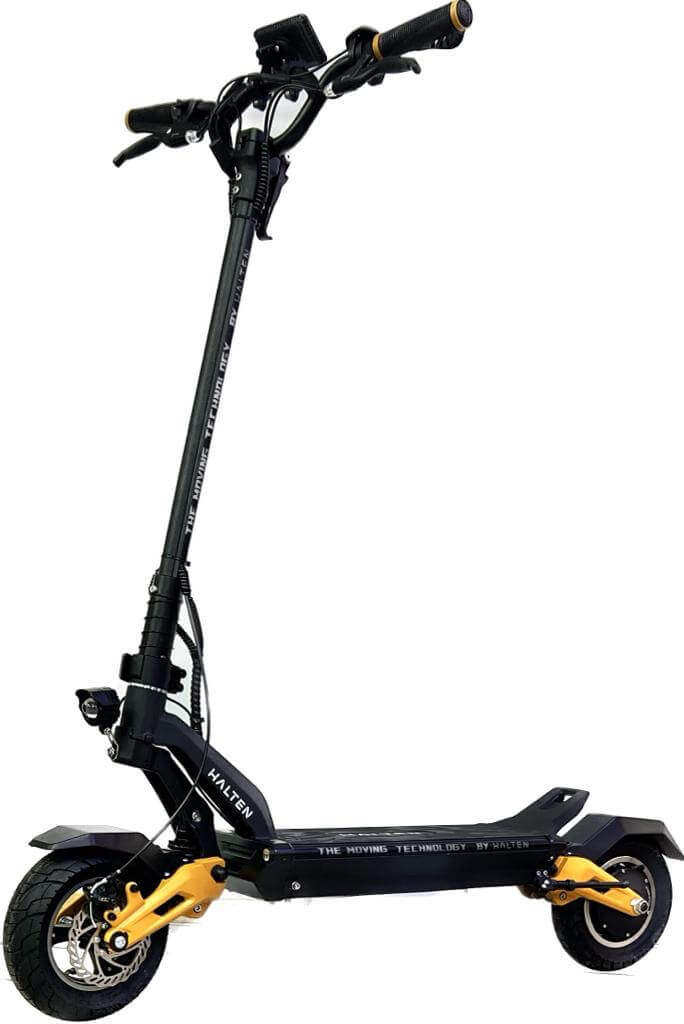 Электросамокат Halten Cross V.3 может разгоняться до 55 км/ч и легко преодолевает расстояние в 50 км с одним зарядом батареи емкостью 52 В и 18,2 Ач. Система управления батареей (BMS) отслеживает температуру ячеек и поддерживает баланс напряжения.