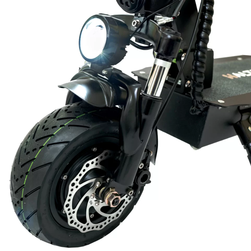 ● Мощность: два мотор-колеса по 1300 Вт, гидравлическая система тормозов позволяют развивать скорость до 70 км/час, обеспечивая при этом высокий уровень безопасности (при соблюдении рекомендаций производителя, поломки и случайные падения исключены).