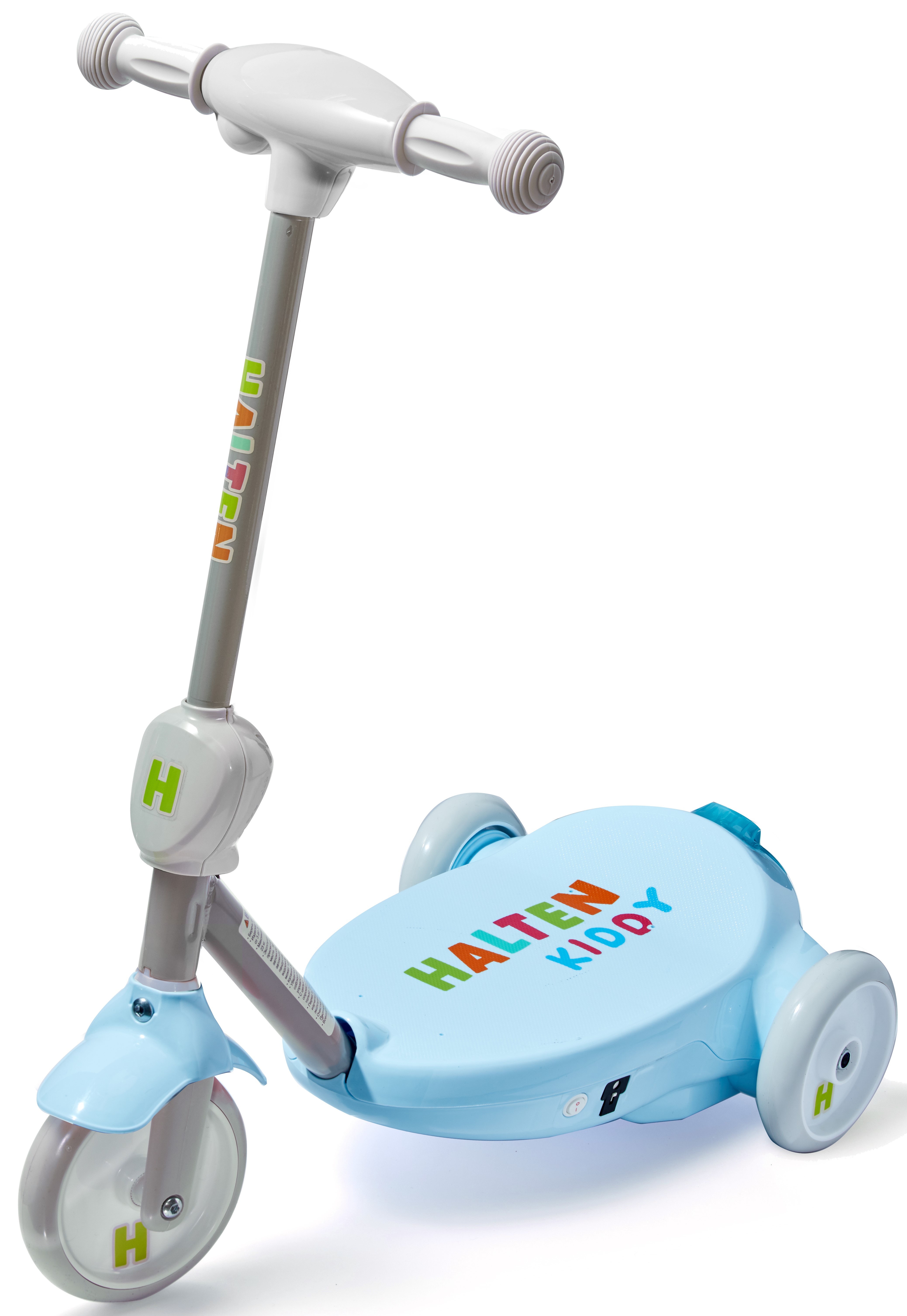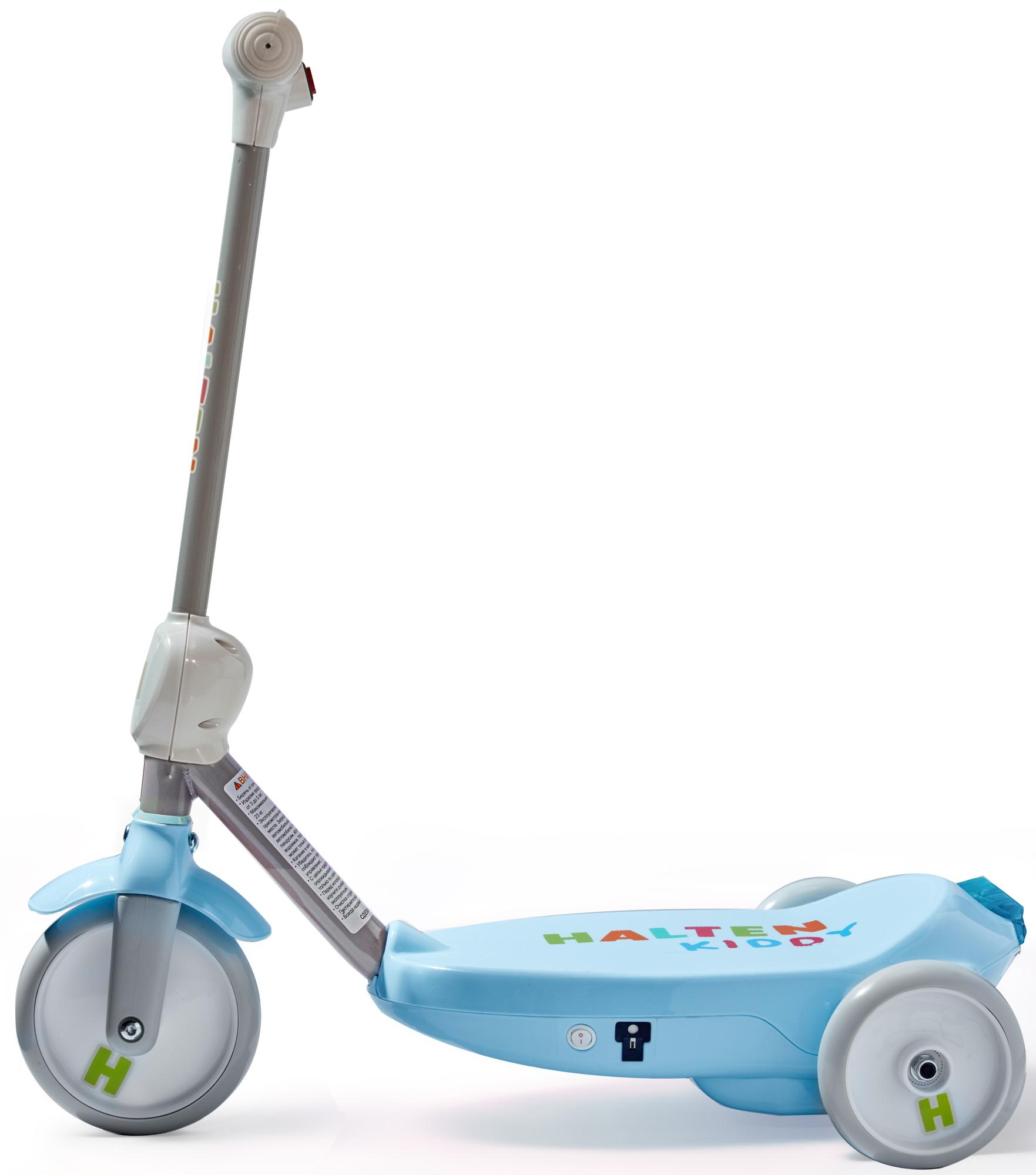 Электросамокат Halten Kiddy изготовлен из металла и пластика, оборудован тройными колесами, что обеспечивает легкость в удержании равновесия и повышает безопасность вашего ребенка на дороге. Самокат предназначен для детей в возрасте от 3 до 6 лет с весом до 25 килограмм. Максимальная скорость составляет 3.5 км/ч, и он может двигаться без подзарядки в течение 40 минут. Время полной зарядки аккумулятора от обычной розетки – около 5 часов. Также оборудован электрическим тормозом.