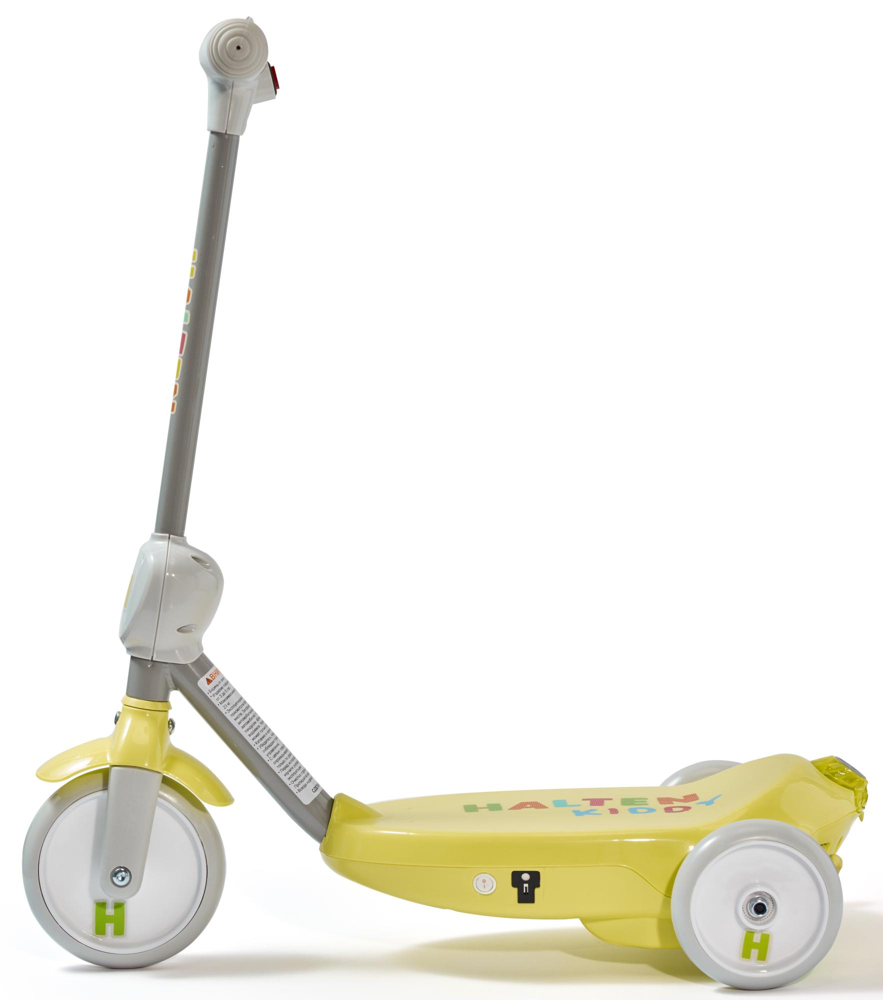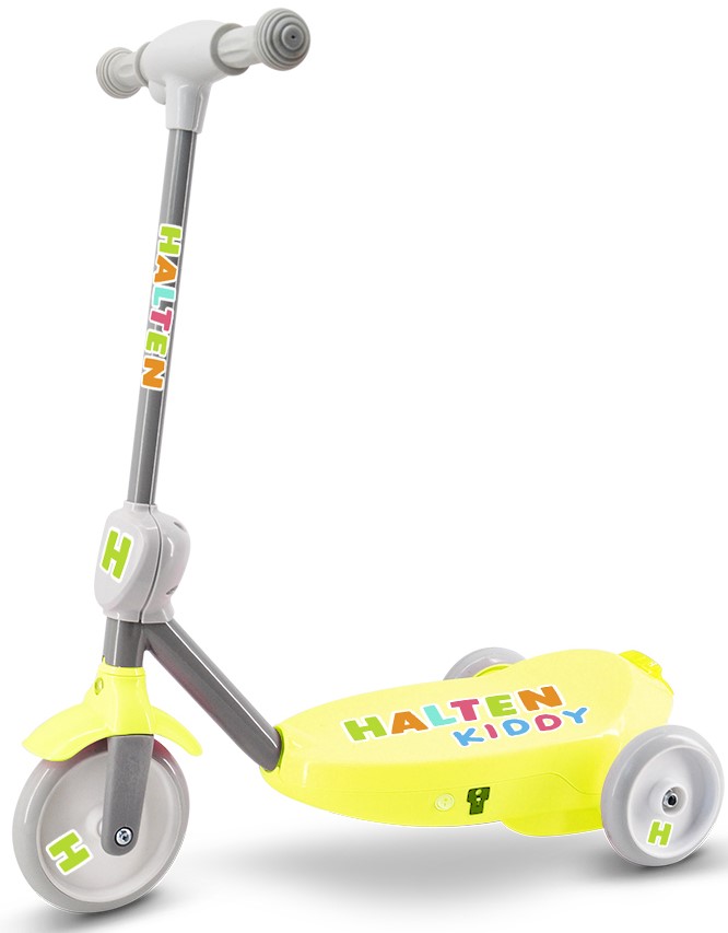 Электросамокат Halten Kiddy изготовлен из металла и пластика, оборудован тройными колесами, что обеспечивает легкость в удержании равновесия и повышает безопасность вашего ребенка на дороге. Самокат предназначен для детей в возрасте от 3 до 6 лет с весом до 25 килограмм. Максимальная скорость составляет 3.5 км/ч, и он может двигаться без подзарядки в течение 40 минут. Время полной зарядки аккумулятора от обычной розетки – около 5 часов. Также оборудован электрическим тормозом.