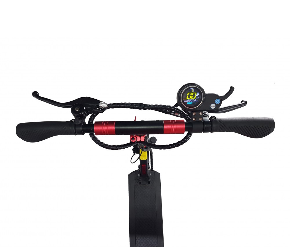 Дизайн новинки продуман до мелочей: эффектная черно-красная рама, удобные и тактильно приятные грипсы, декорированное противоскользящим покрытие.