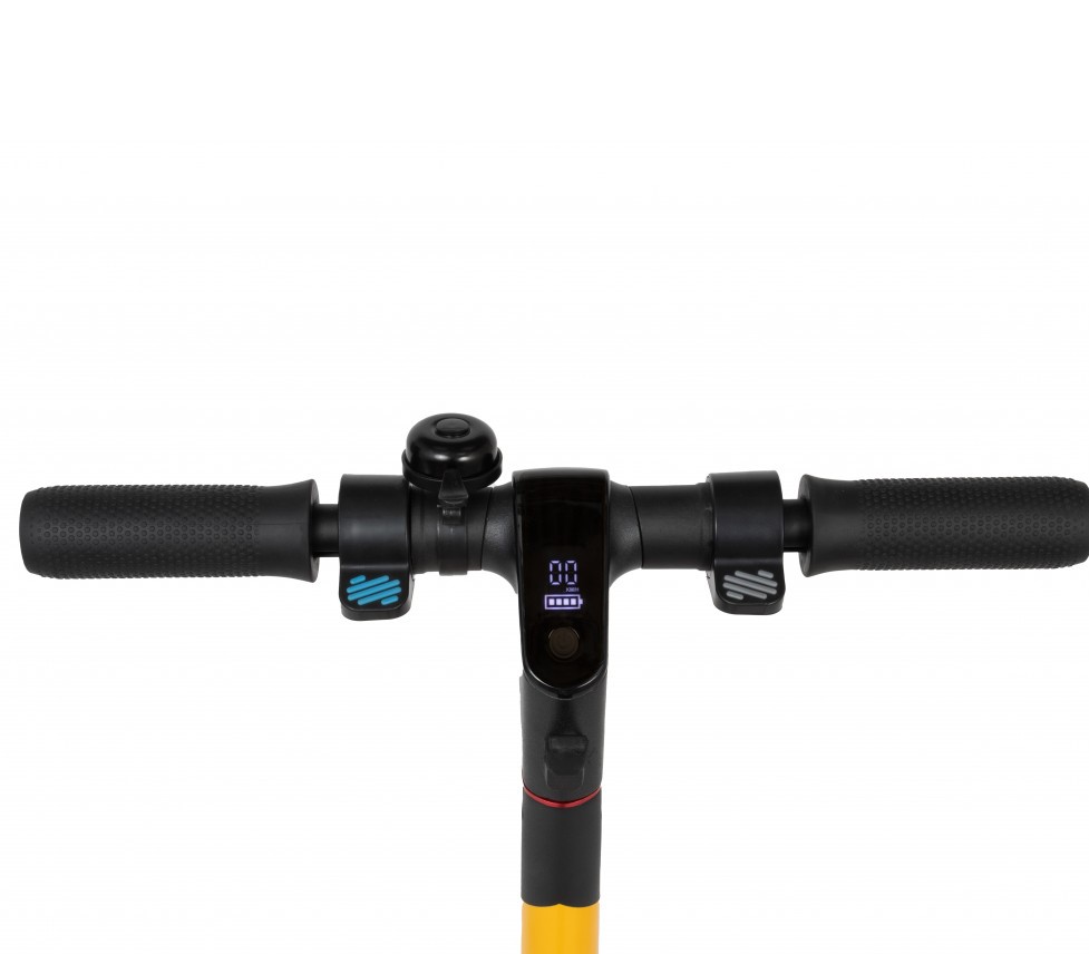 LCD дисплей, расположенный по центру руля, отображает основные характеристики электросамоката: текущую скорость, состояние аккумуляторной батареи и другие. Справа от дисплея расположен чувствительный рычаг газа, обеспечивающий максимально плавный старт.