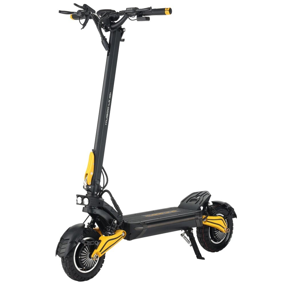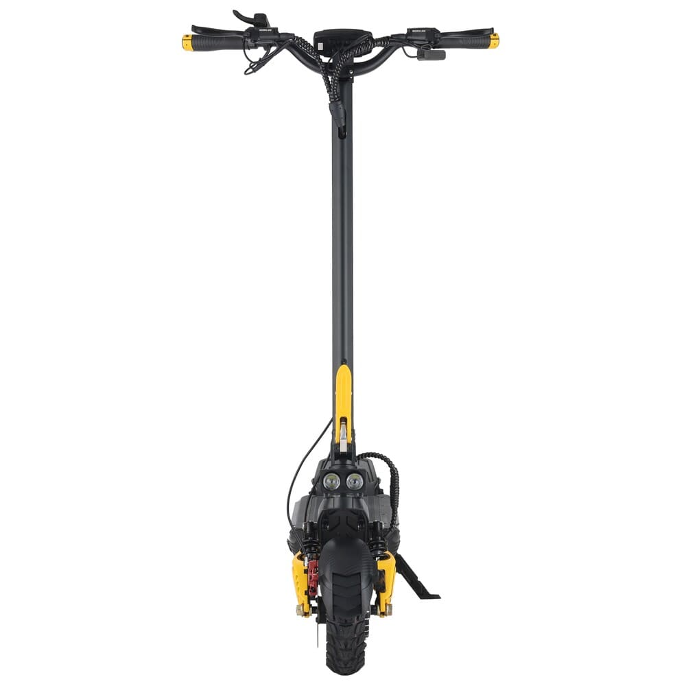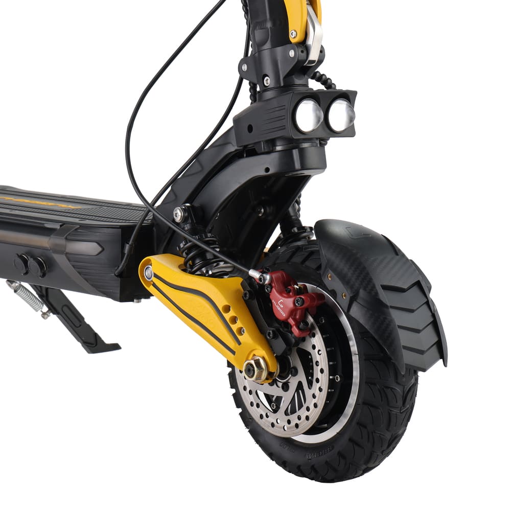 Двухлинзированная фара не только делает езду безопасной в тёмное время суток, но и добавляет стильный акцент к дизайну. Черно-жёлтая расцветка придаёт самокату современный и динамичный вид.