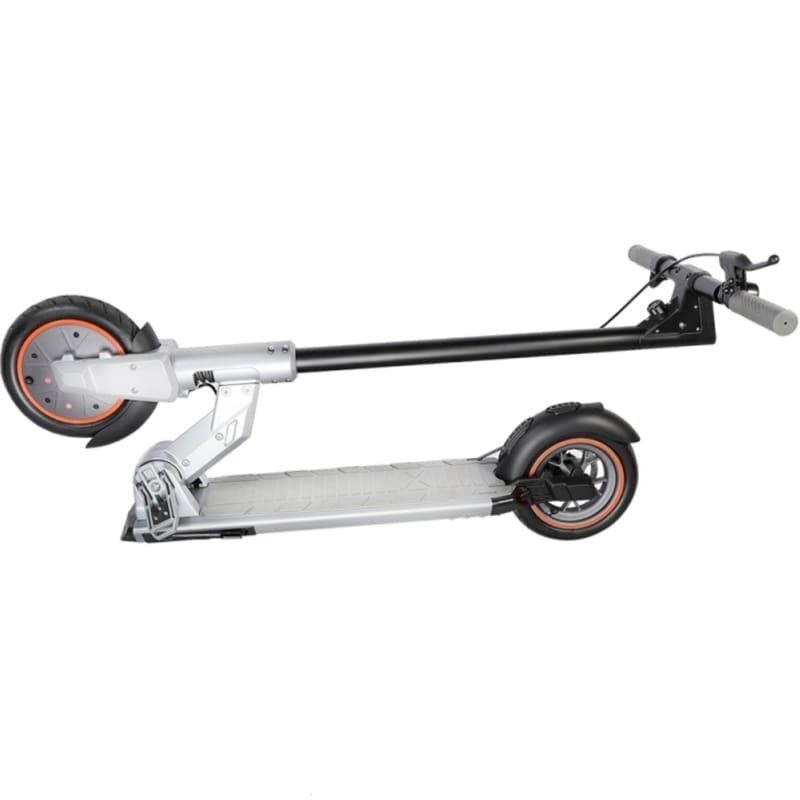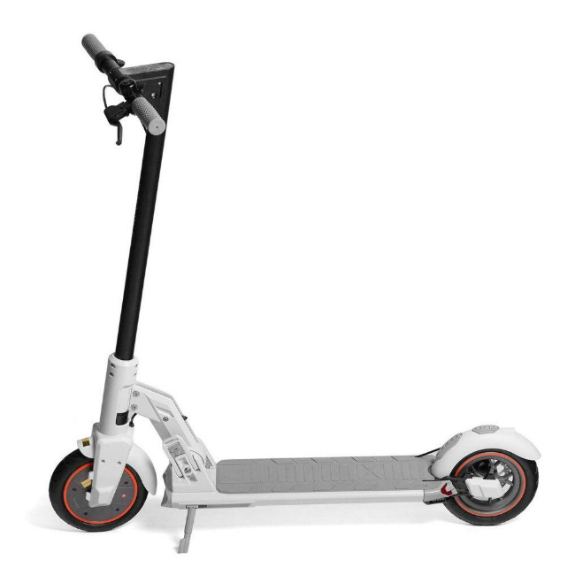 Весит эта симпатяга всего лишь 16 кг, но может выдержать нагрузку в 120 кг. Также данный электросамокат весьма технологичен – в него встроен бортовой компьютер. Чтобы зарядить его на 100%, вам понадобится всего лишь пять часов. Максимальная скорость, до которой может разогнаться эта модель: 30 км/ч. Предельная дальность поездки без подзарядки достигает 25 километров.