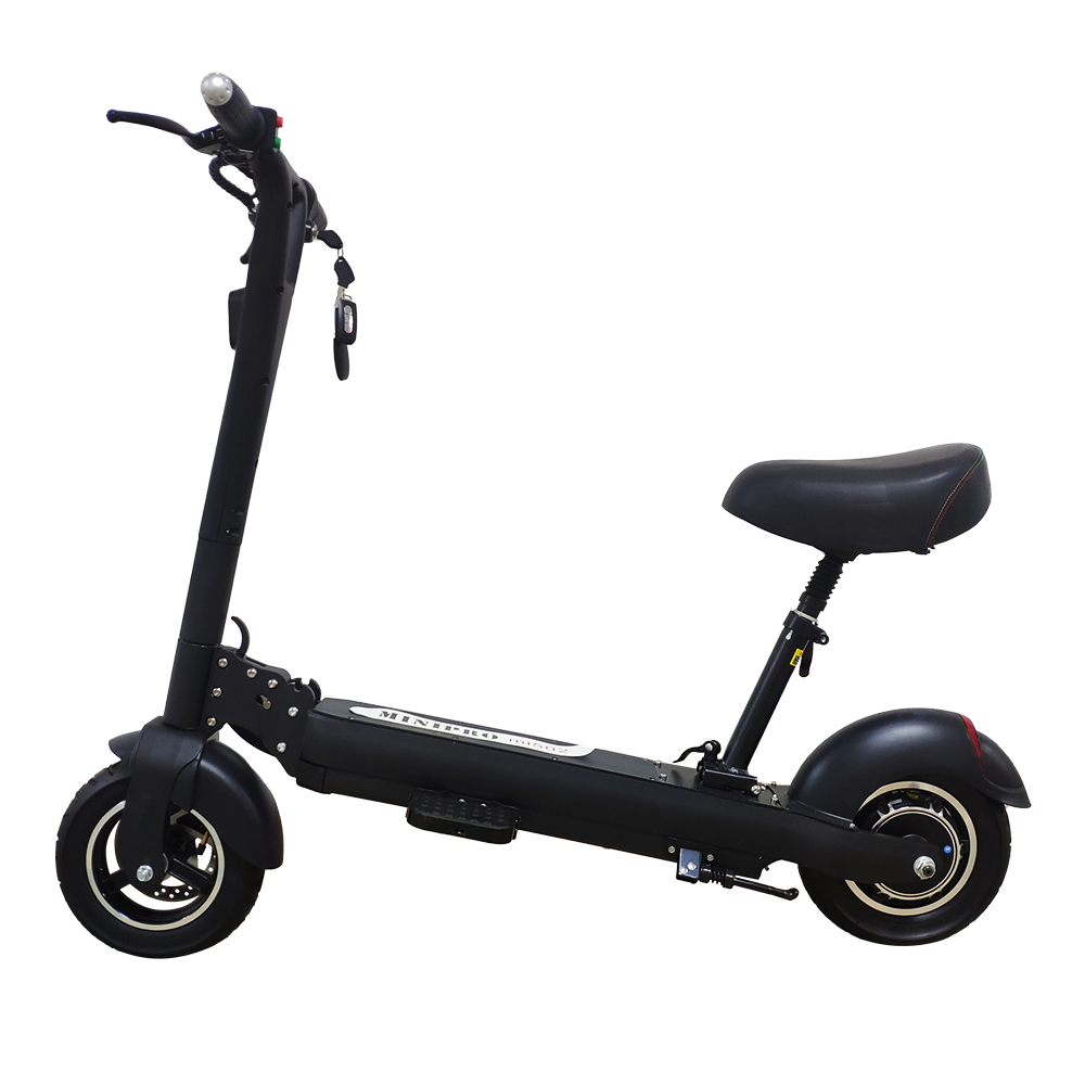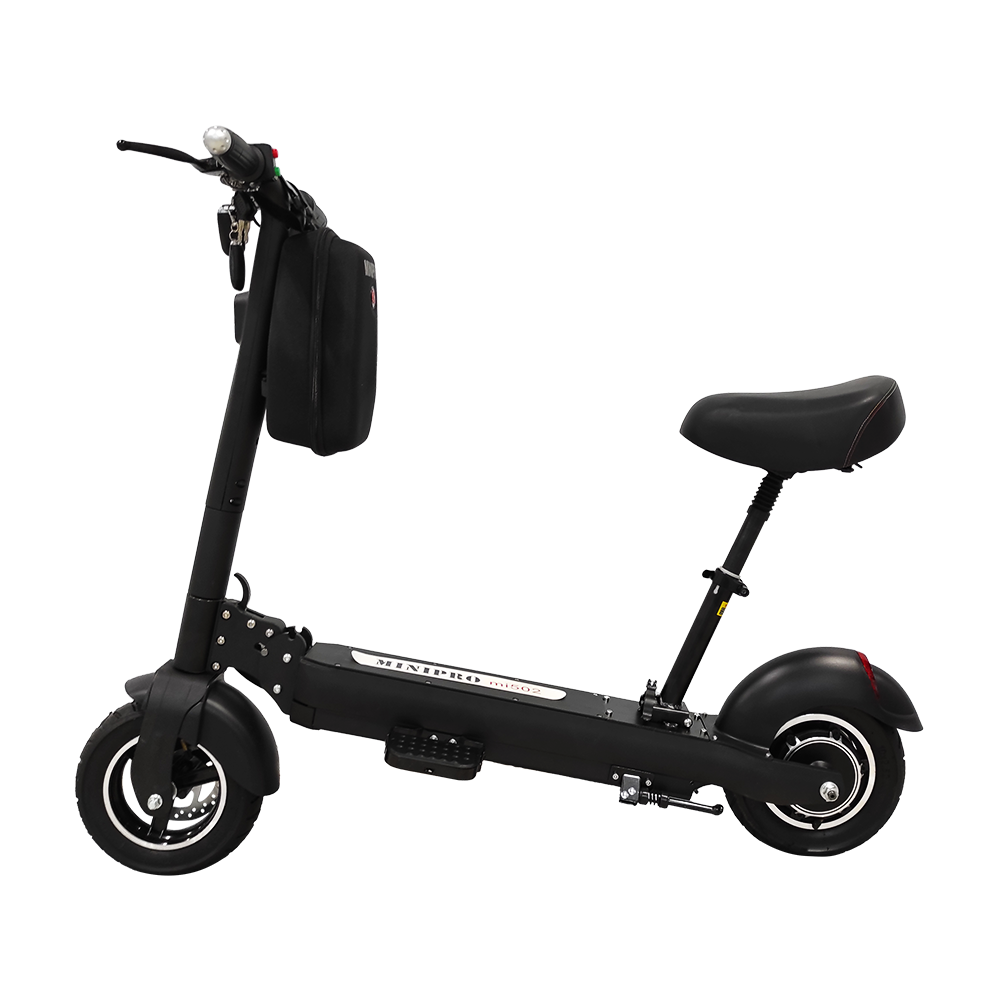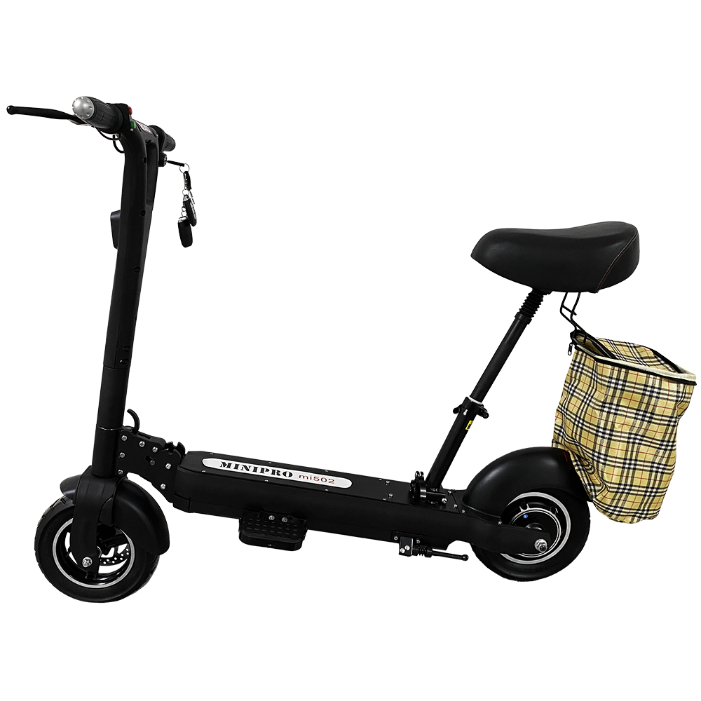 MiniPro Mi502 — электросамокат для подростков. Его особенность в необычной деке: она узкая, и установлена под наклоном. Вместо привычной платформы для ног здесь — складные подставки. Рама самоката полностью металлическая, но весит всего 13 килограммов. Ее можно легко нести там, где нельзя проехать. Максимальная скорость модели — 30 км/ч, а запас хода — 35 км на полном заряде батареи.
