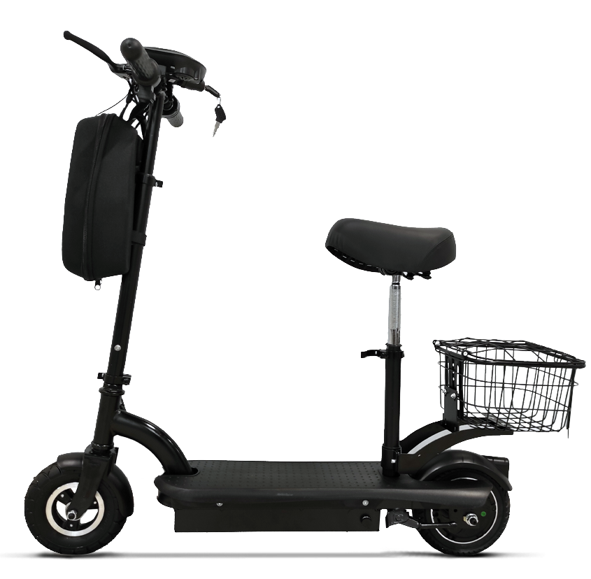 Управлять электросамокатом S1 просто. Достаточно нажать кнопку газа, сесть на мягкое сиденье и поворачивать руль в нужном направлении. Если вы захотите остановиться, просто потяните на себя рычаг барабанного тормоза. Он находится на руле.