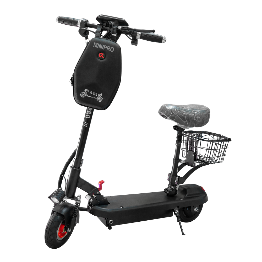 Электросамокат MINIPRO S2 оснащен задней вместительной корзиной, эргономичным сиденьем, мощной фарой для ночной езды, ЖК-дисплеем и стоп-сигналом.