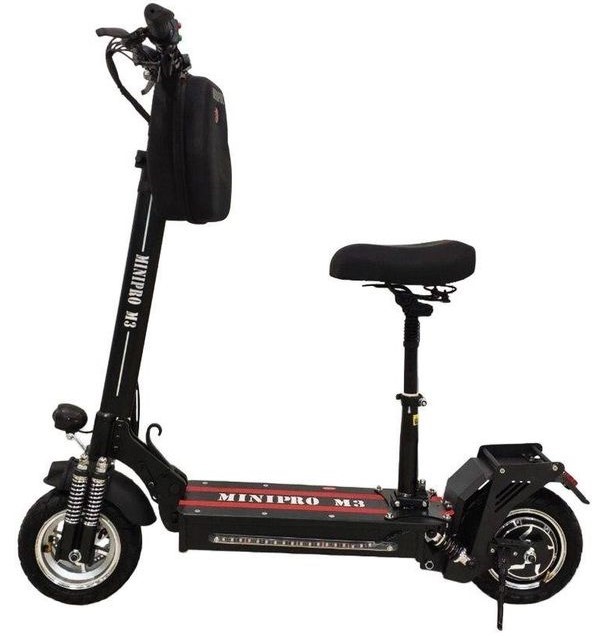 MiniPro M3 — городской электросамокат с мощным техническим характером. Он уверенно чувствует себя на ровном асфальте и сельской дороге. MiniPro M3 разгоняется до 45 км/ч и проезжает до 45 километров на полном заряде. Его особенность во встроенной влагозащите, которая бережет электрические детали транспорта от воды и пыли: на M3 можно ездить по мокрому асфальту. Еще один плюс модели — большие 10.5-дюймовые колеса и сиденье в комплекте.