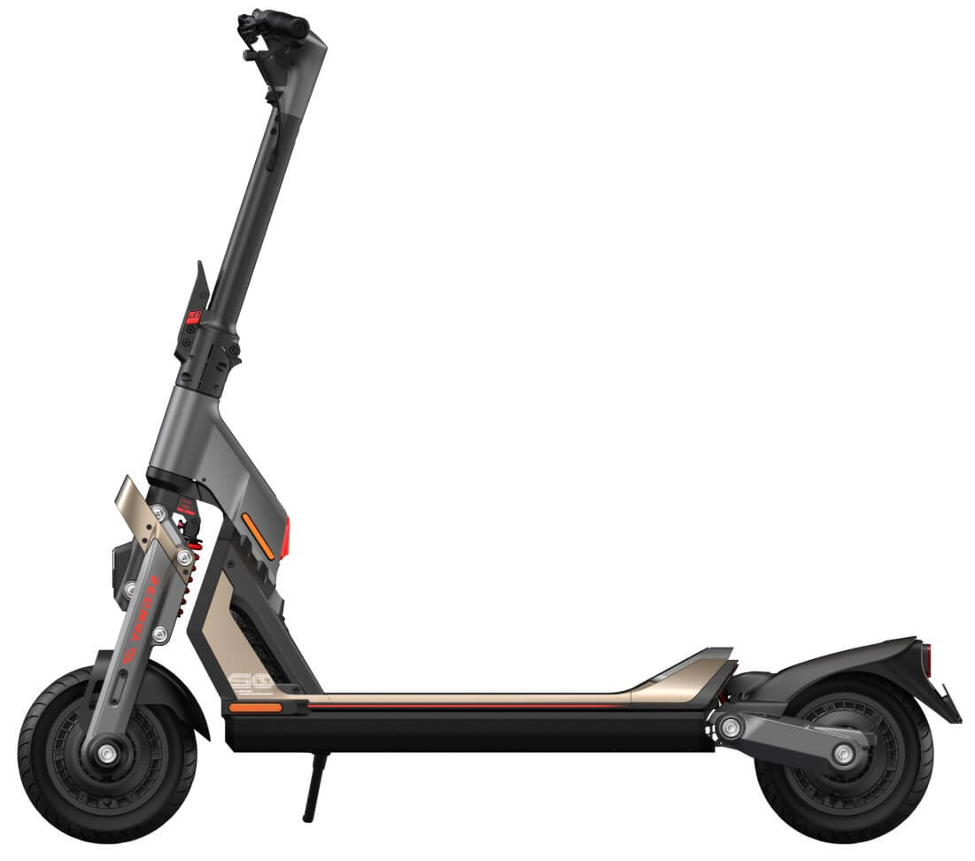 Технические характеристики этой техники позволяют ей справляться с уклонами вплоть до 30 градусов. Электросамокат также оснащен гидравлическими амортизаторами и гидравлической тормозной системой, обеспечивая комфортную и безопасную скоростную езду на большие расстояния. Фирменный дисплей предоставляет райдеру важные технические параметры и обеспечивает безопасность в пути.