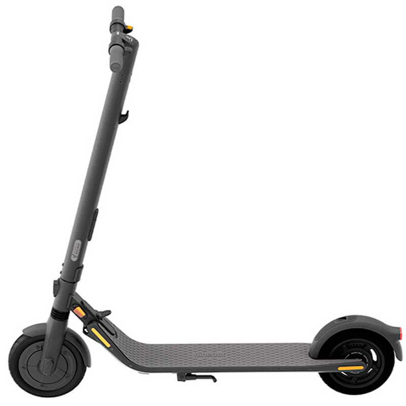Электросамокат Ninebot KickScooter E25A имеет прочный черный корпус с защитой IP54 и предлагает современный складной механизм. Эта конструкция дополнена различными усовершенствованиями, включая LCD-дисплей, RGB-подсветку деки, пневматические шины, электронный звонок и тройную систему торможения. У этого устройства с 9-дюймовыми колесами и ручным газом установлен мотор мощностью 300 Вт.
