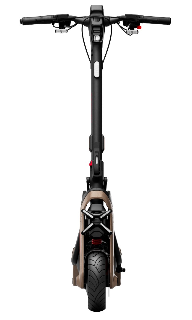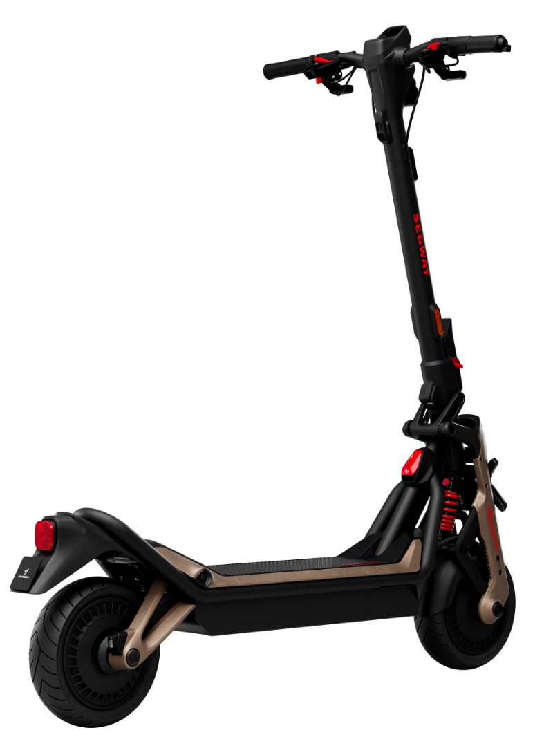 Колеса диаметром 11 дюймов обеспечивают уверенное сцепление с дорогой, а передний амортизатор повышает комфорт при движении по неровным поверхностям. Устройство способно преодолевать подъемы до 38°, что делает его подходящим даже для сложного рельефа. Для безопасности предусмотрены фары и стоп-сигнал, повышающие видимость на дороге.