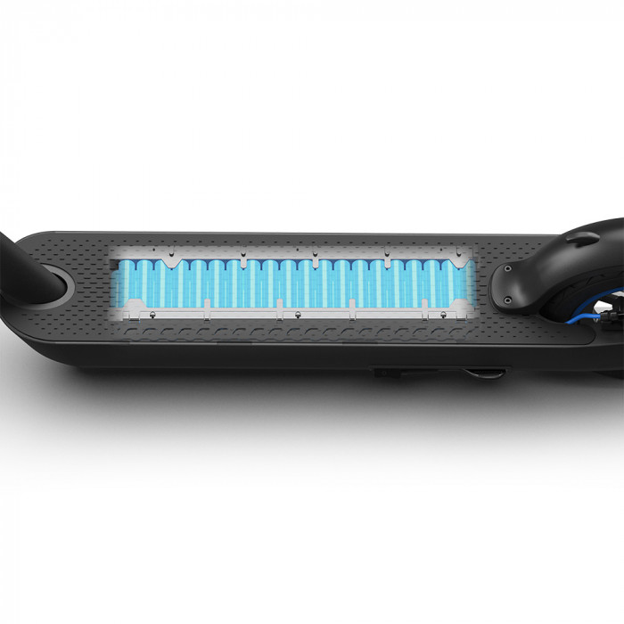 Безопасный. Если придётся ехать ночью, можно не беспокоиться за видимость: благодаря очень яркой подсветке самокат будет заметен на дороге. Эффективная тормозная система состоит из дискового и электромагнитного тормозов — такая комбинация наиболее безопасная. К тому же, когда нужно будет затормозить, участников движения об этом предупредит и задний фонарь электросамоката.