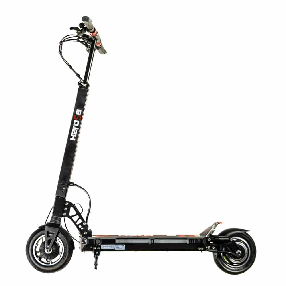 Hero S9 – настоящий герой среди одноклассников. Вес 19.7 кг, многофункциональный бортовой компьютер, с помощью которого вы сможете настроить ограничение скорости, мощность срабатывания электронного тормоза, включить/выключить круиз контроль и многое другое. На тест-драйве самокат без проблем разогнал райдера весом 95 кг до 45 кмч.