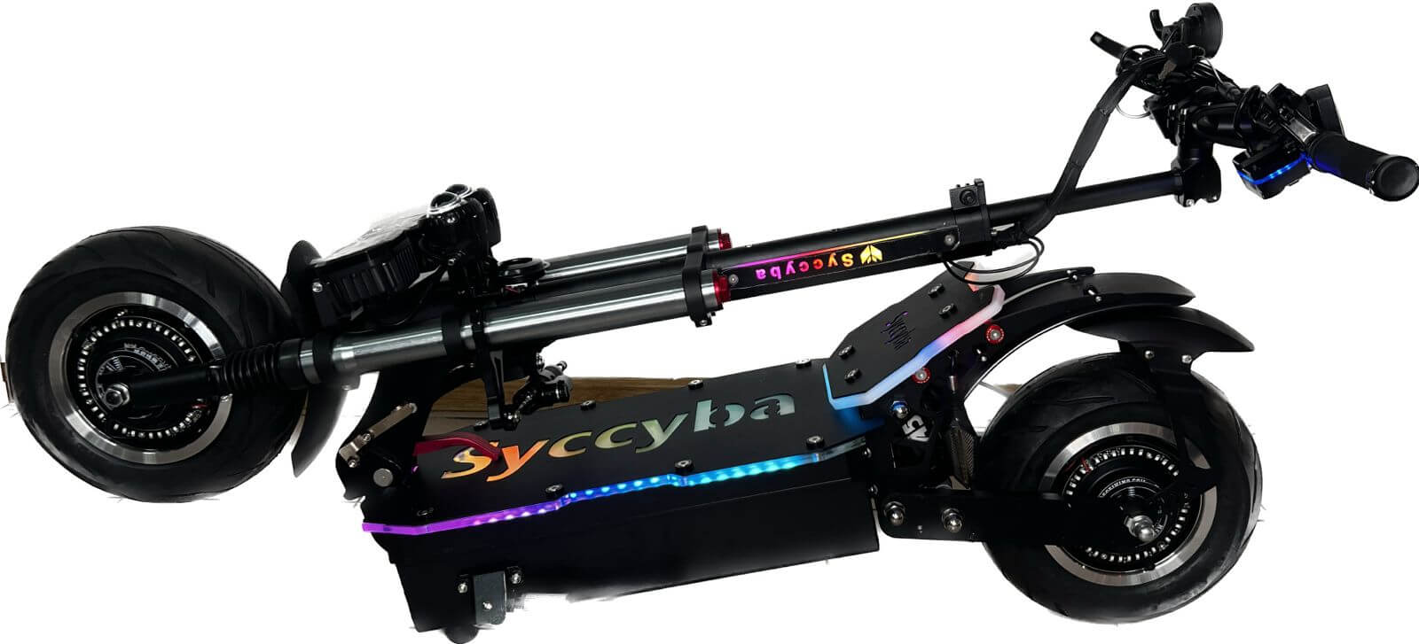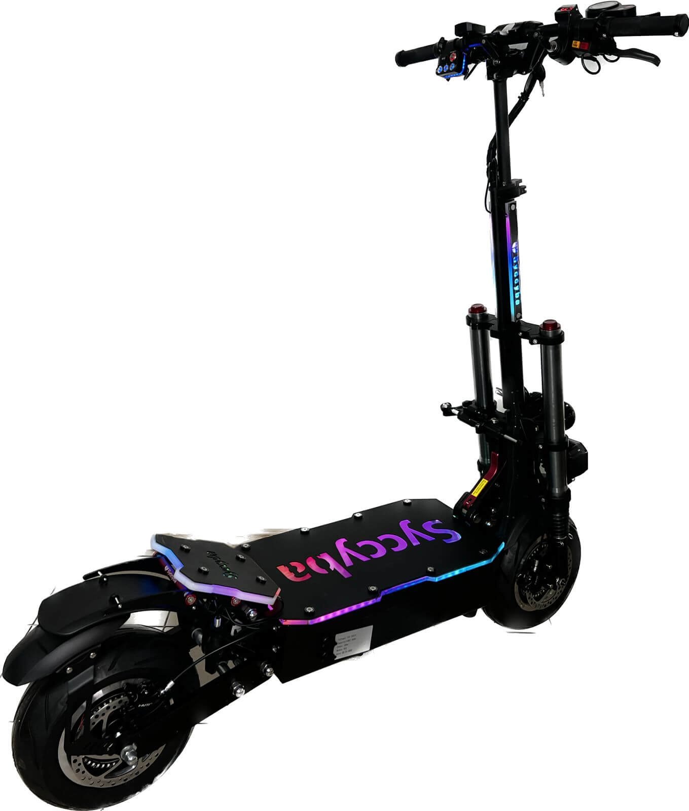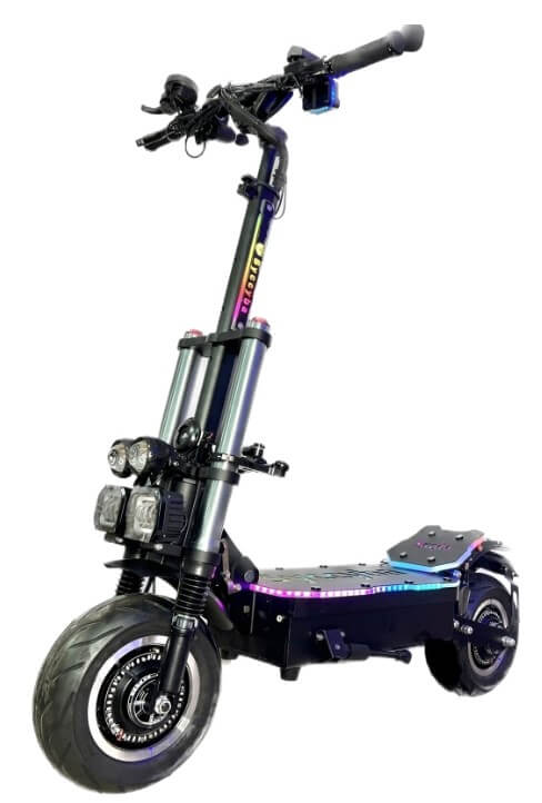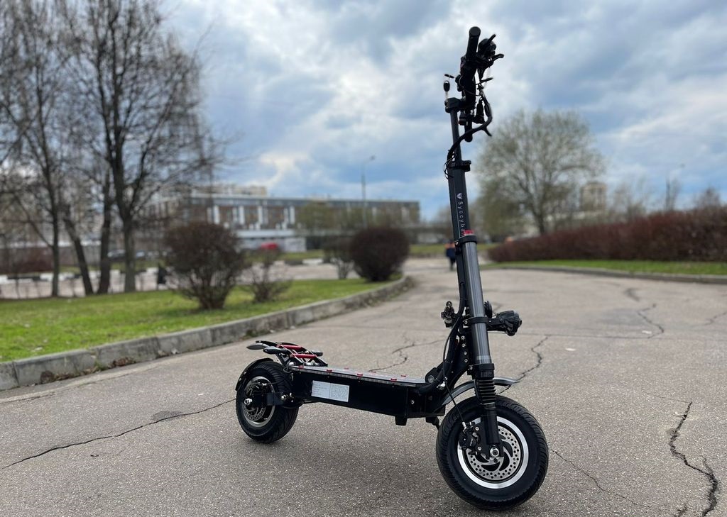 Электросамокат оборудован двумя моторизованными колесами диаметром 11 дюймов, каждое мощностью 3000 Вт, обеспечивая суммарную максимальную мощность в 6000 Вт. Это позволяет достичь динамичного разгона и наслаждаться полной свободой передвижения. Самокат оснащен литий-ионной батареей с емкостью 50 Ач и напряжением 60 В. Интегрированная "умная" BMS-плата с автоматическим балансом ячеек обеспечивает безопасность и увеличивает срок службы аккумулятора.