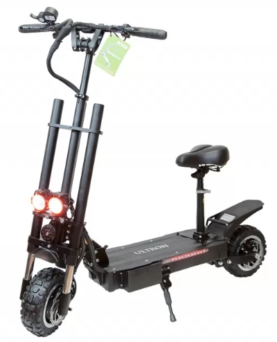 ULTRON T118 оснащен 11-дюймовыми широкими колесами для дополнительной устойчивости. Кроме того, он имеет съемное амортизированное сиденье, которое пригодится в дальних поездках. Большой аккумулятор ёмкостью 35 А*ч обеспечивает одной зарядки транспорта до 95 км пути.