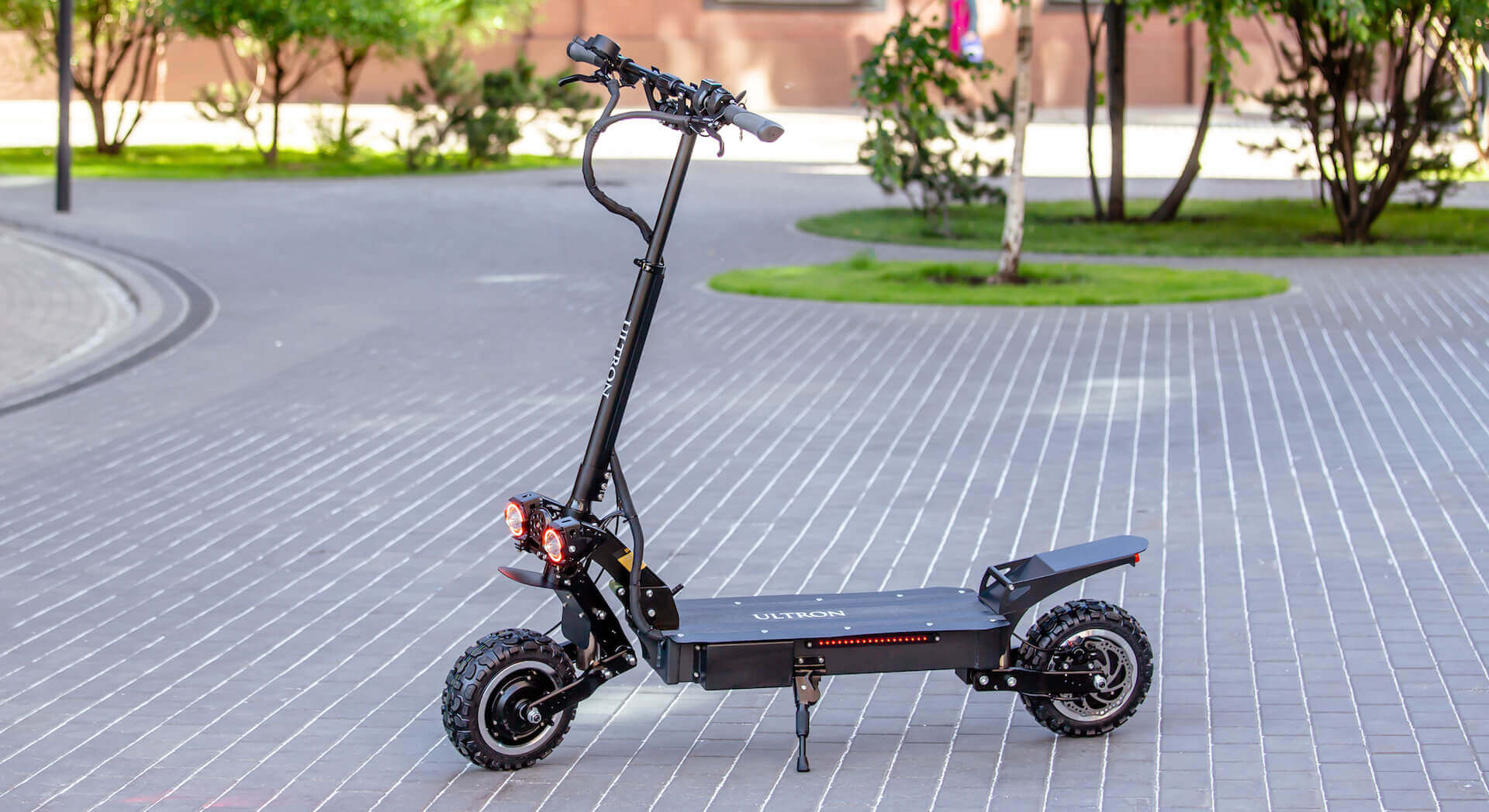 Электросамокат ULTRON T108 Pro оборудован широкими колесами с рельефными протекторами, а также дисковыми тормозами на передних и задних колесах. Амортизация усилена до максимума, что обеспечивает высокий уровень комфорта, особенно во время долгих поездок. Для дополнительного комфорта во время дальних путешествий можно установить сиденье.