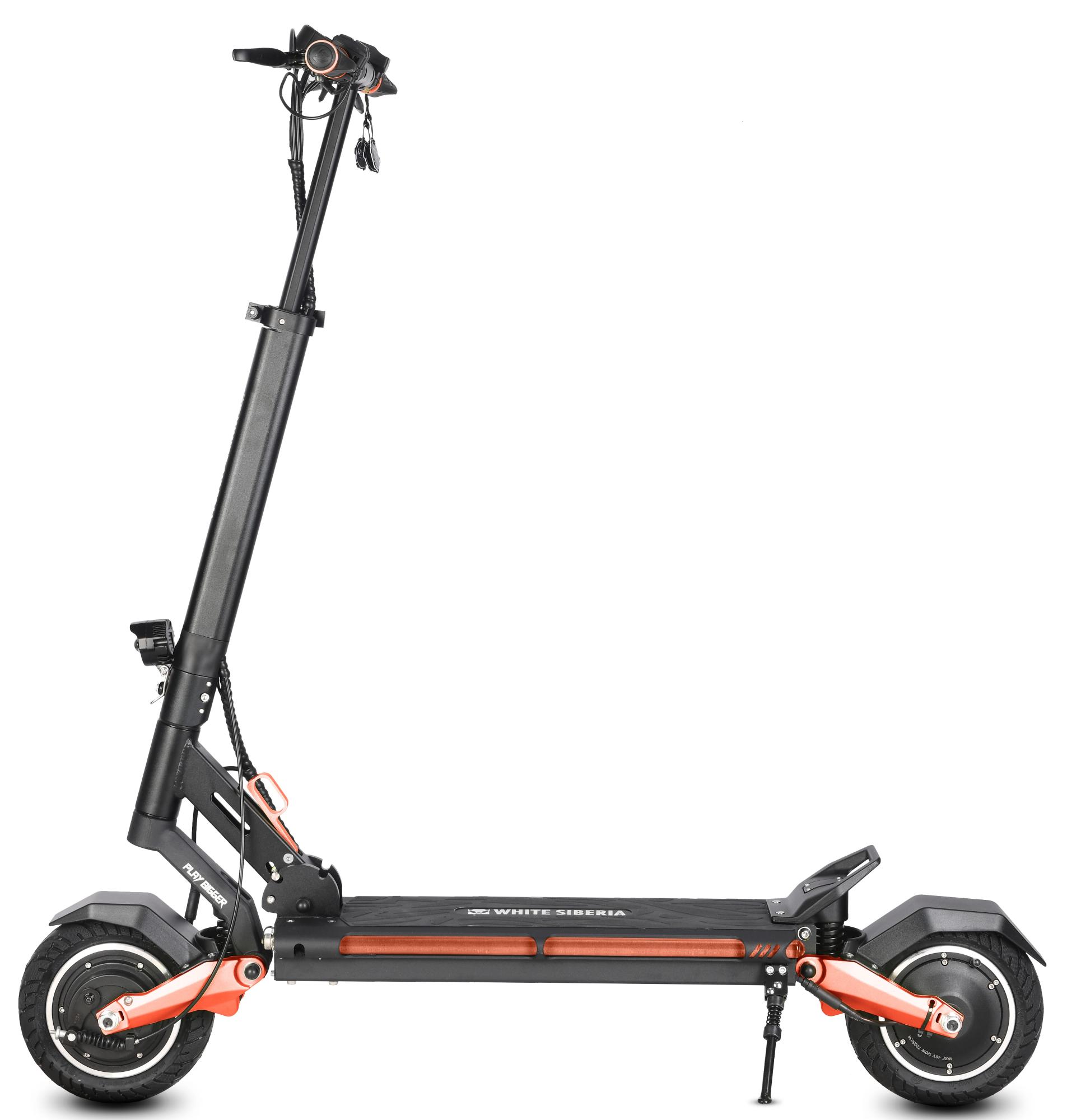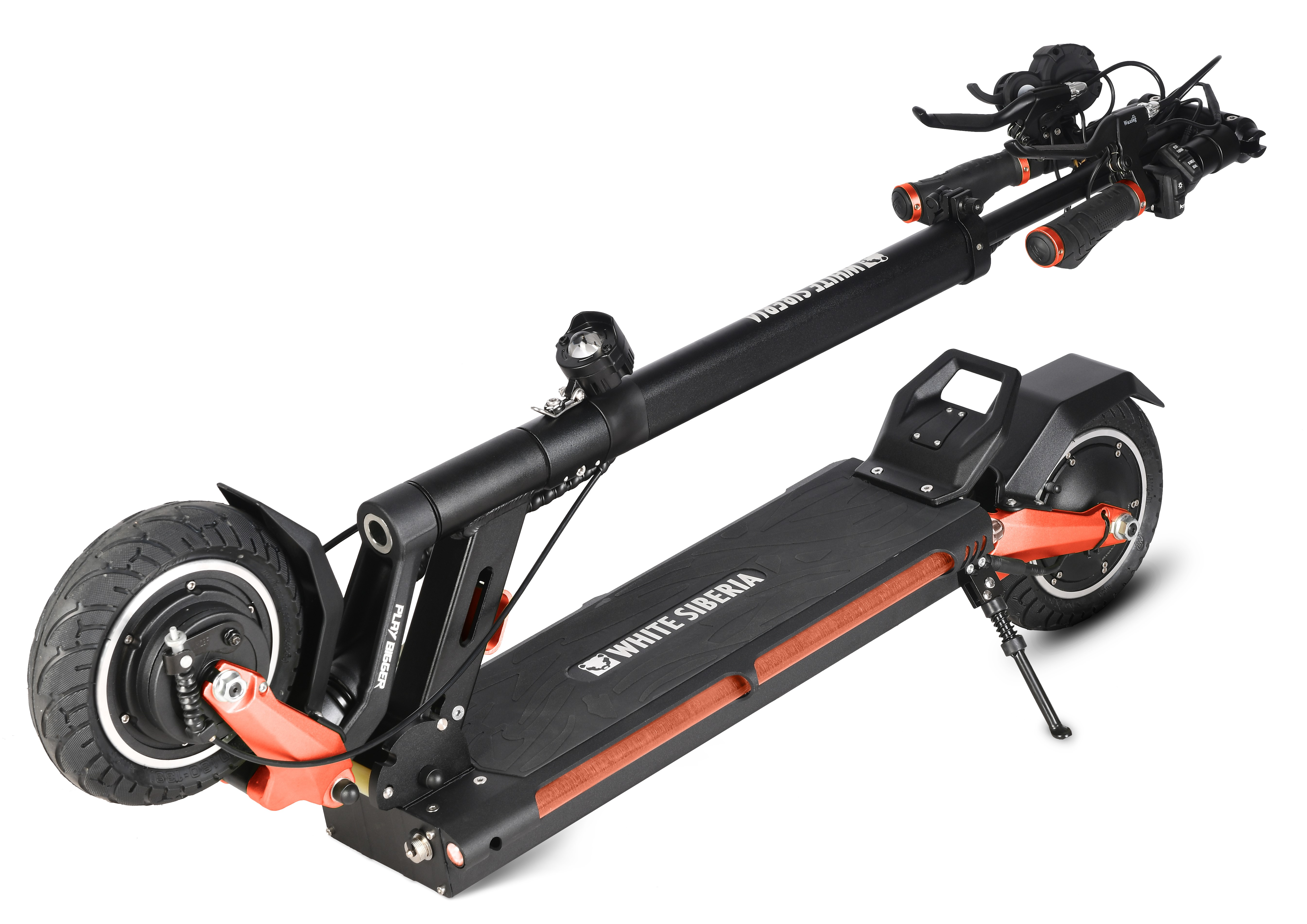Новая мощная амортизационная система обеспечивает комфорт при езде. Самокат имеет полный привод, который можно отключить с помощью кнопки. Аккумулятор на 48V защищён балансировочной платой, что продлевает срок службы батареи и самоката. Складные ручки руля упрощают перевозку самоката в автомобиле. Максимальная скорость достигает 50 км/ч. Для безопасности предусмотрен таймер выключения через три минуты.