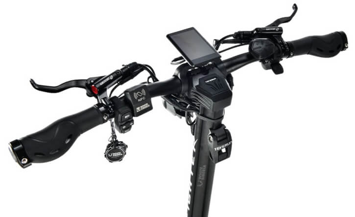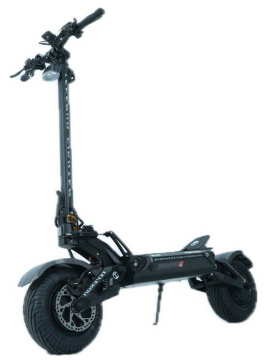 Полностью регулируемая подвеска обеспечивает комфортное и плавное движение даже по неровным поверхностям. Гидравлические дисковые тормоза на переднем и заднем колёсах гарантируют безопасное и эффективное торможение в любых условиях. Большие надувные шины с хорошим протектором обеспечивают отличное сцепление с дорогой и повышают устойчивость самоката. Материалы, такие как алюминиевый сплав, используются в конструкции, обеспечивая прочность и долговечность.