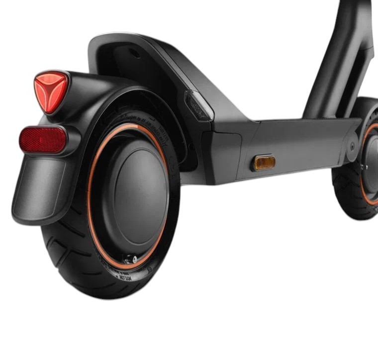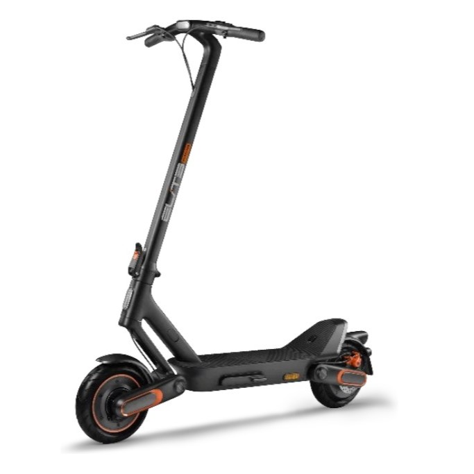 Для комфорта установлена полимерная амортизация спереди и сзади, разработанная с учётом инженерных решений из аэрокосмической отрасли. Колёса диаметром 10 дюймов с шириной профиля 2,7" оснащены бескамерными самовосстанавливающимися шинами с гелем Nano-Memory: при проколе гель мгновенно запечатывает повреждение, предотвращая потерю давления. Широкий руль (585 мм) с эргономичной изогнутой формой обеспечивает отличный контроль.