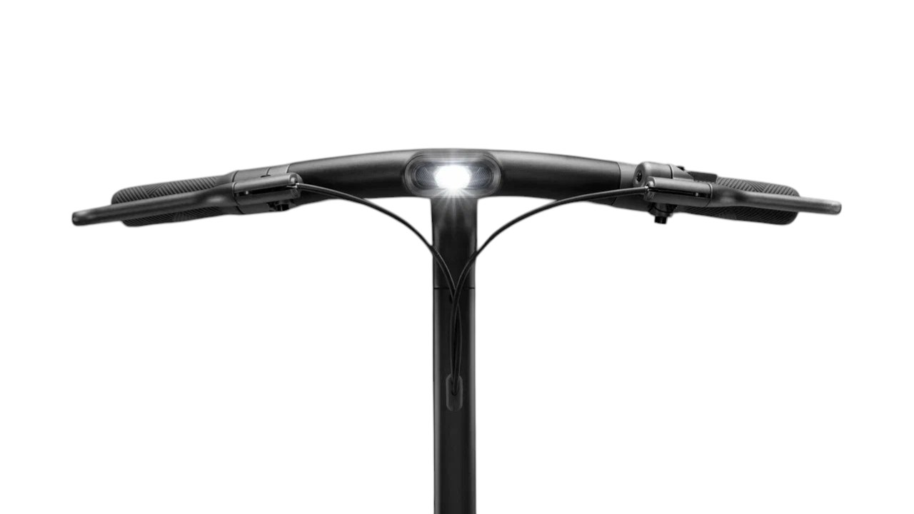 Конструкция выполнена из авиационного алюминиевого сплава серии 6, сочетающего высокую прочность, лёгкость и коррозионную стойкость. Поверхность обработана методом матового порошкового напыления толщиной 80–120 мкм, что делает корпус устойчивым к царапинам и износу. Общий вес составляет 29 кг, при максимальной нагрузке до 120 кг. Однорычажный консольный механизм заднего колеса упрощает обслуживание и добавляет дизайнерской выразительности.