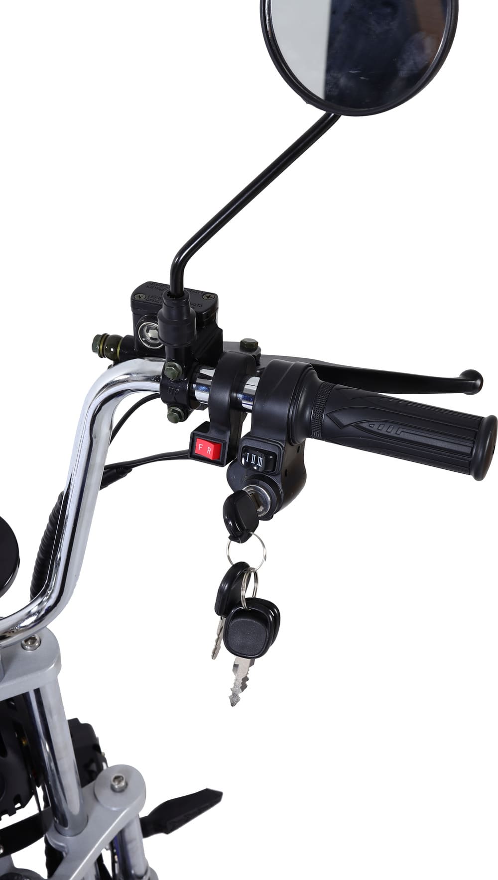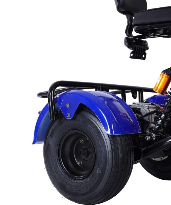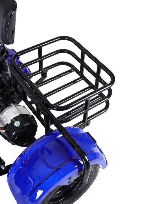Трёхколёсная платформа обеспечивает повышенную устойчивость, особенно при остановках и поворотах, что делает скутер идеальным выбором как для пожилых пользователей, так и для активного использования в логистике. Прочная стальная рама выдерживает интенсивные нагрузки, а общий вес модели составляет 50 кг, что говорит о надёжной и плотной сборке. Максимальная нагрузка достигает 140 кг, позволяя перевозить двух человек или крупногабаритный груз.