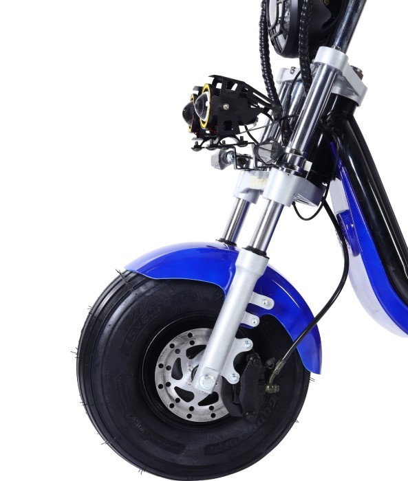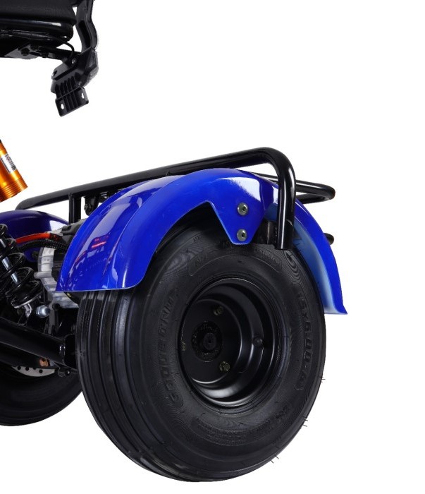 Для безопасности установлены гидравлические дисковые тормоза на всех трёх колёсах, обеспечивающие мощное и стабильное торможение даже на высокой скорости. Подвеска включает передние и задние амортизаторы, эффективно смягчающие удары от неровностей дороги. Колёса диаметром 15 дюймов сочетают хорошее сцепление, проходимость и маневренность, подходя для разных типов покрытий.