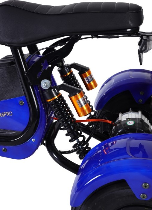 CityCoco Trike GT X6 — это мощный и устойчивый электроскутер с трёхколёсной конструкцией, разработанный для комфортной и безопасной езды по городским улицам и за их пределами. Оснащённый двигателем мощностью 1000 Вт, он развивает скорость до 45 км/ч и обеспечивает уверенную тягу даже при движении на подъём или с полной нагрузкой. Устройство работает от Li-ion аккумулятора 48 В / 18 000 мА·ч, обеспечивающего запас хода до 40 км. Полная зарядка занимает всего 6 часов.