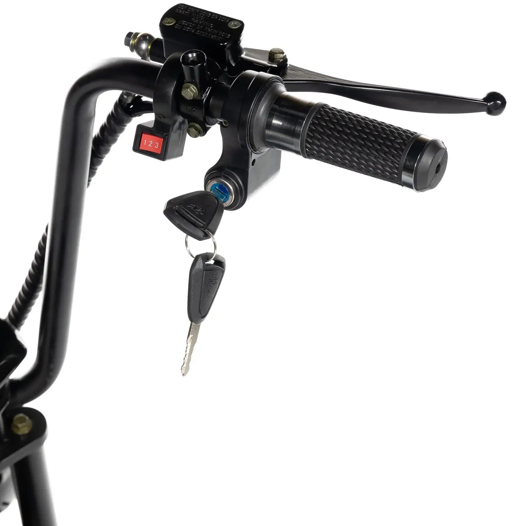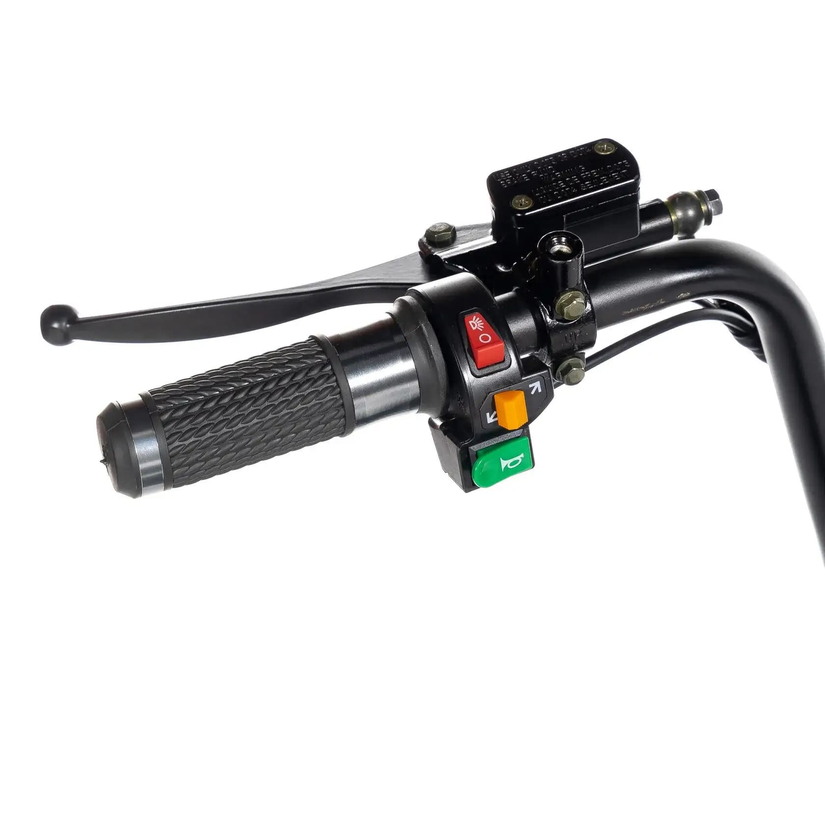Для безопасности установлены гидравлические дисковые тормоза, обеспечивающие мощное и плавное торможение даже при высокой скорости и полной загрузке. Колёса диаметром 15 дюймов обеспечивают отличное сцепление, проходимость и устойчивость на любом покрытии — от асфальта до грунтовки. Прочная рама (материал не указан) рассчитана на длительные нагрузки и сохраняет жёсткость в поворотах.