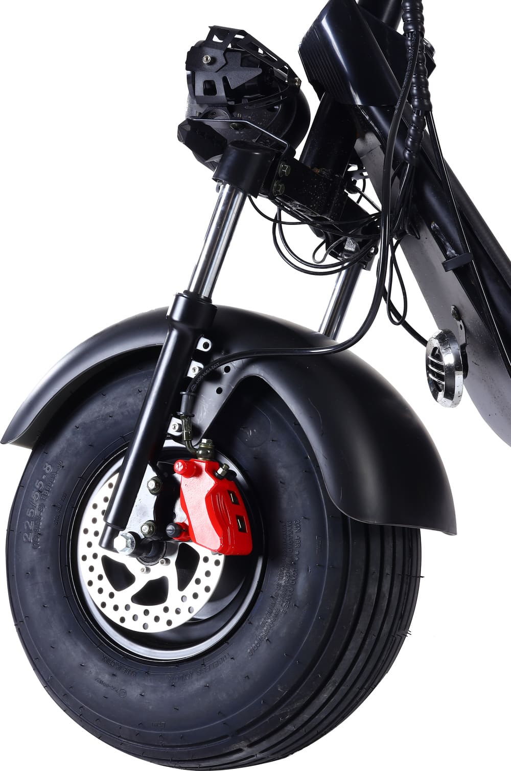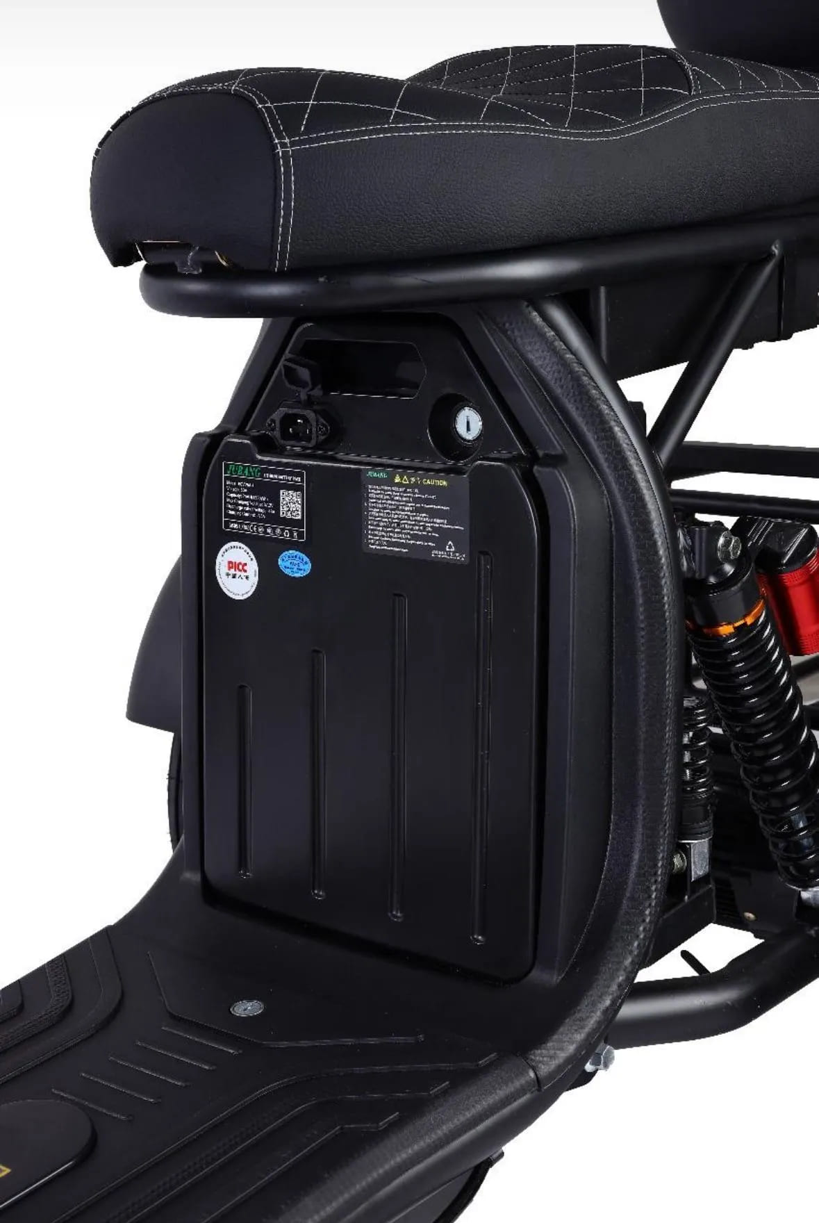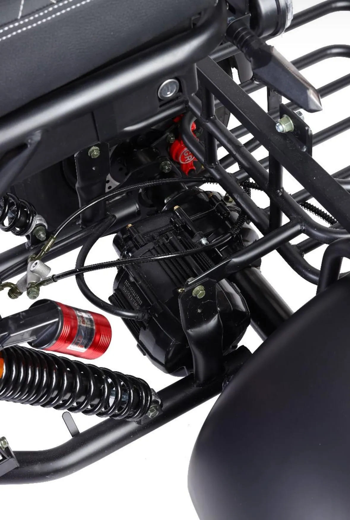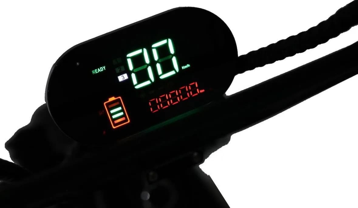 Для безопасности установлены барабанные тормоза спереди и сзади, обеспечивающие мощное и предсказуемое торможение даже на высокой скорости. Подвеска включает передние и задние амортизаторы, эффективно смягчающие удары от ям и выбоин. Колёса диаметром 18 дюймов обеспечивают отличное сцепление и проходимость на различных типах покрытий — от асфальта до грунтовки.