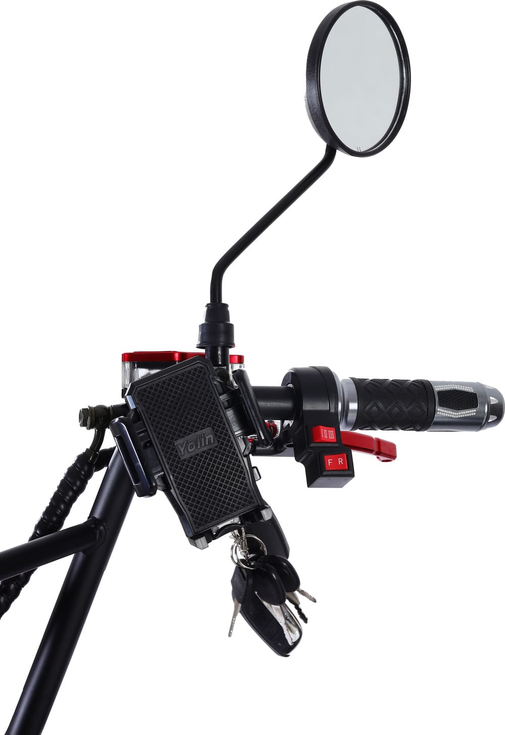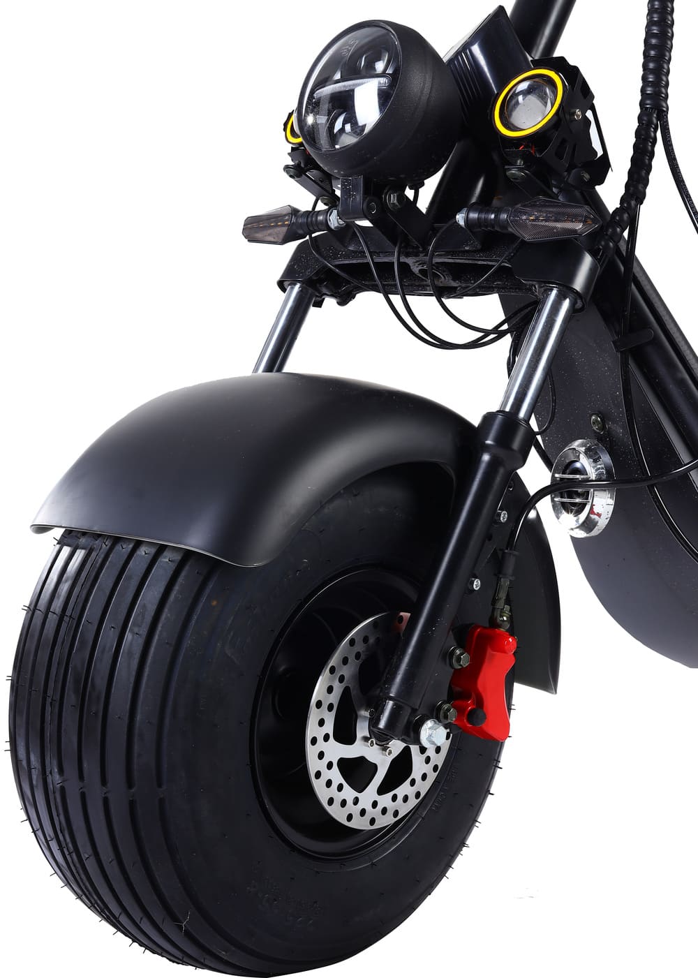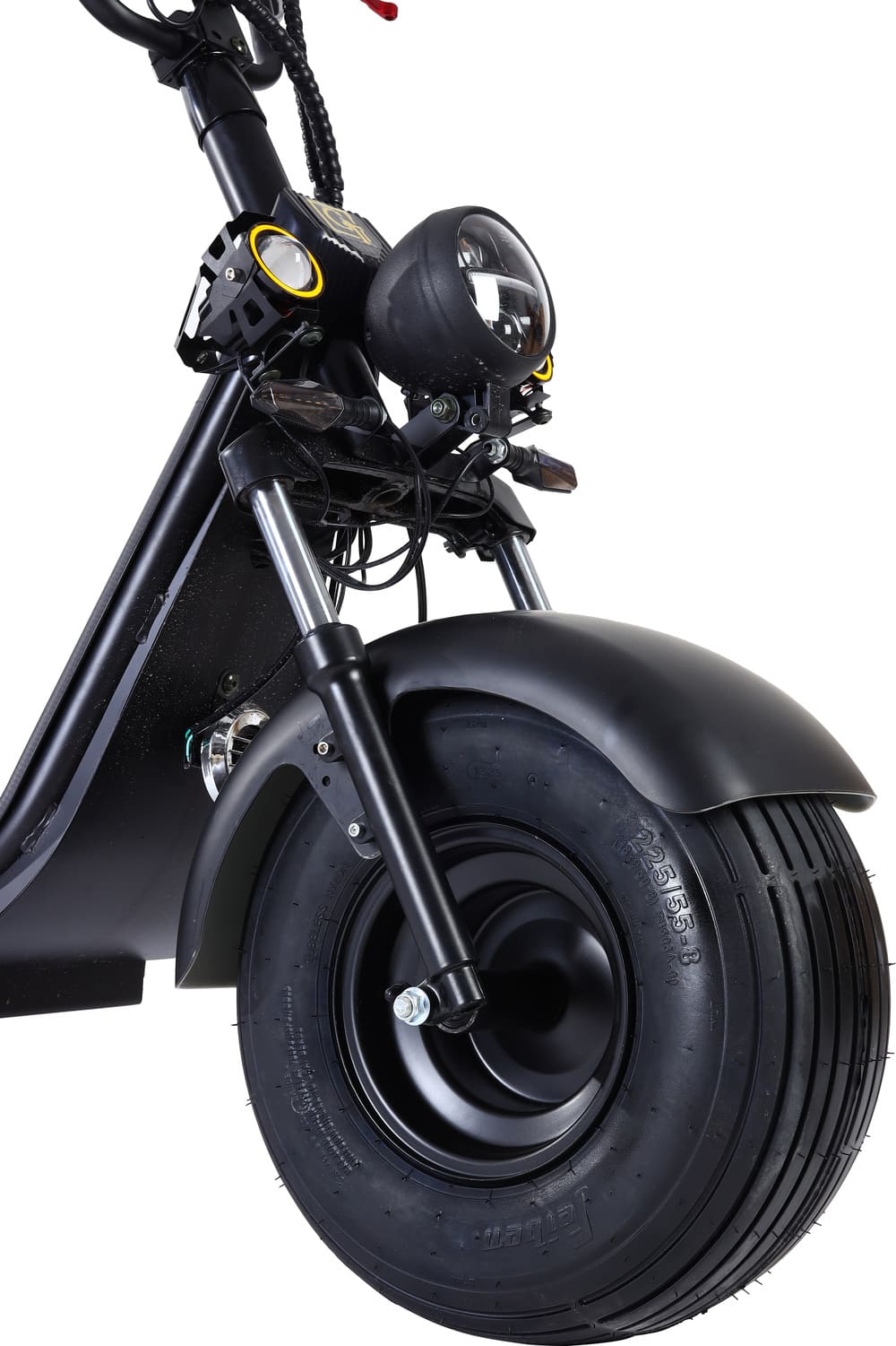 Для безопасности установлены барабанные тормоза спереди и сзади, обеспечивающие мощное и предсказуемое торможение даже на высокой скорости. Подвеска включает передние и задние амортизаторы, эффективно смягчающие удары от ям и выбоин. Колёса диаметром 18 дюймов обеспечивают отличное сцепление и проходимость на различных типах покрытий — от асфальта до грунтовки.