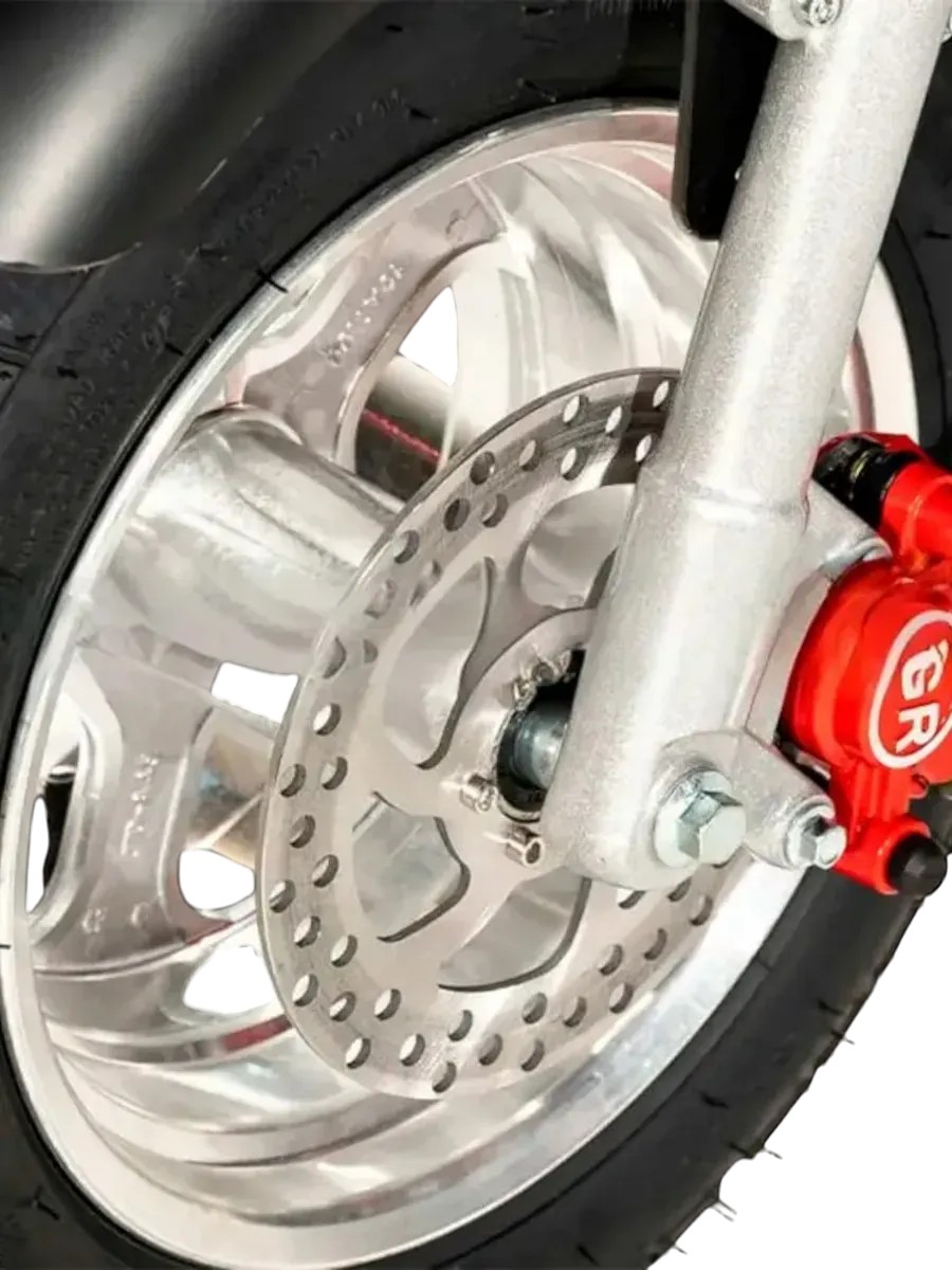 Электроскутер Citycoco GT X11 Е30 представляет собой мощное и производительное транспортное средство, идеально подходящее для тех, кто ценит скорость и дальность хода. Снабженный 3999-ваттным двигателем, этот скутер способен развивать максимальную скорость до 60 км/ч, что делает его одним из самых быстрых в своем классе. Благодаря аккумулятору ёмкостью 20000 мАч и напряжением 60 В, он обеспечивает впечатляющий пробег до 60 километров на одном заряде. Особого внимания заслуживает возможность установки дополнительного аккумулятора, которая позволяет увеличить запас хода, делая модель идеальной для длительных поездок. Полная зарядка основного аккумулятора занимает около 10 часов, а современная литиево-ионная технология гарантирует долговечность и стабильную работу батареи.
