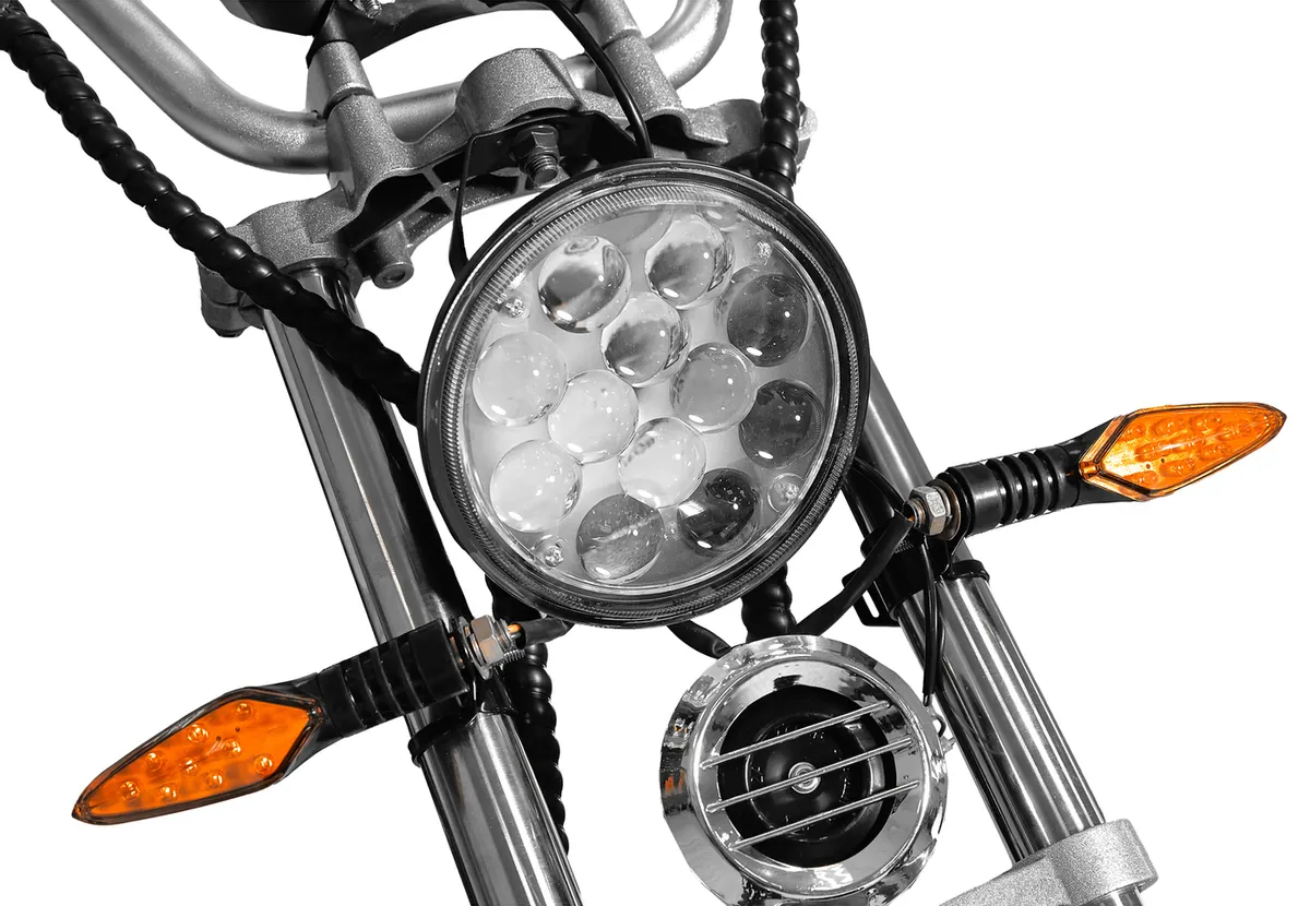 Особое внимание уделено безопасности и управляемости. Трехколесная конструкция с колесами диаметром 10 дюймов обеспечивает исключительную устойчивость даже при высокой скорости, а гидравлическая дисковая тормозная система гарантирует надежное торможение в любых условиях. Прочный корпус и вес в 86 кг делают модель максимально стабильной на дороге, что особенно важно для трехколесных электроскутеров. Максимальная нагрузка до 200 кг позволяет использовать скутер как одному человеку, так и для совместного использования.