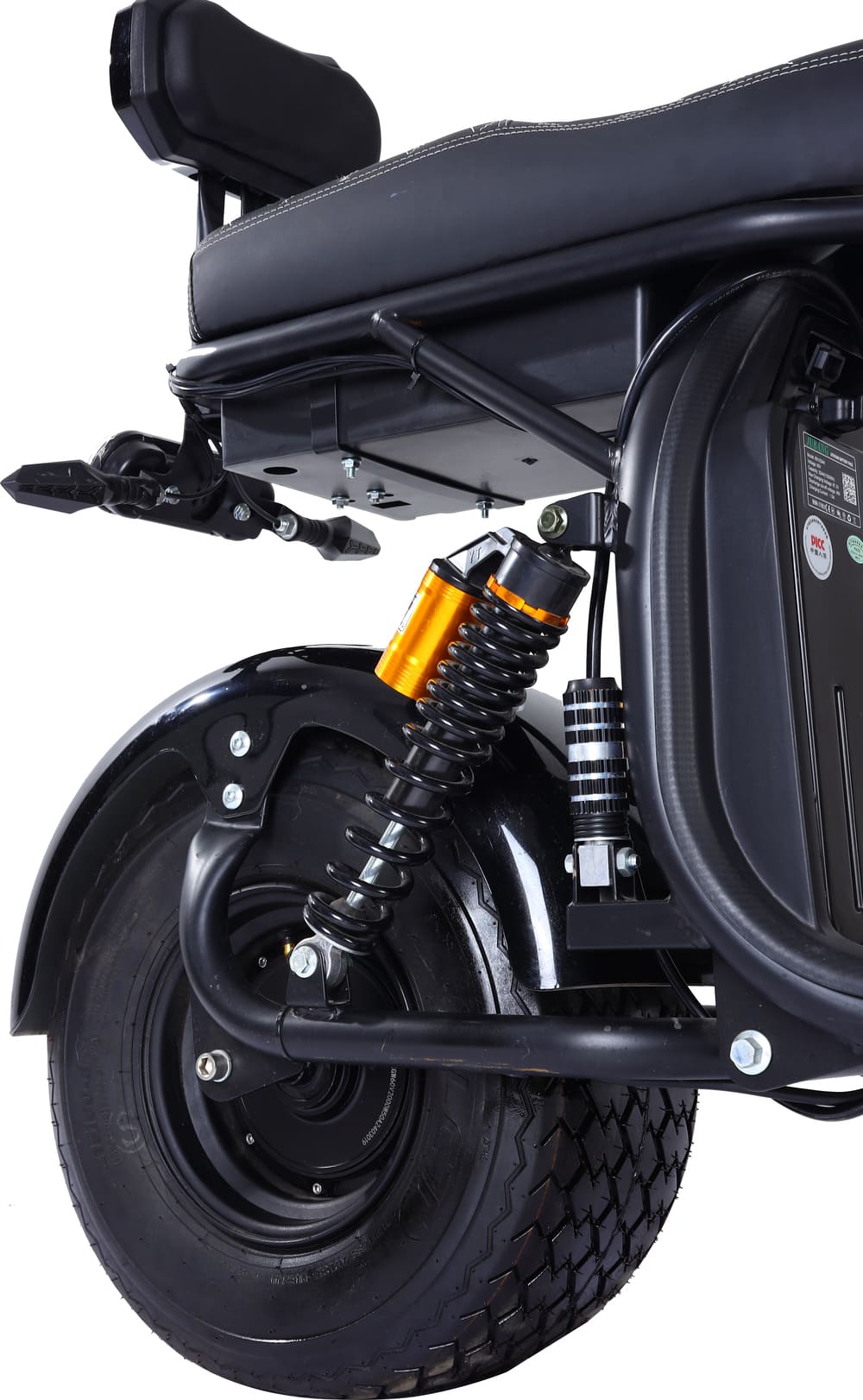 Конструкция электроскутера разработана с учетом комфорта и безопасности райдера. Модель оснащена как передним, так и задним амортизаторами, что гарантирует плавность хода даже на неровных участках дороги. Гидравлическая дисковая тормозная система обеспечивает надежное и быстрое торможение при любых условиях, а вес в 57 кг делает устройство достаточно устойчивым, несмотря на его внушительные размеры. Максимальная нагрузка в 150 кг позволяет использовать скутер людям различной комплекции.