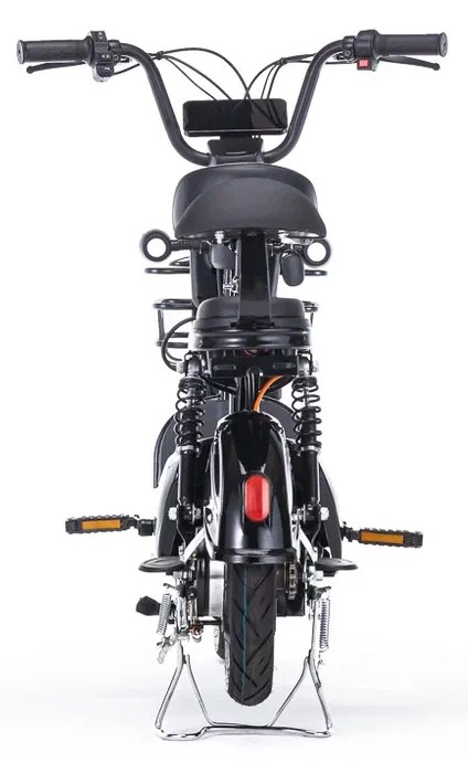 На велосипеде установлен современный электродвигатель мощностью 500 ватт, который позволит развивать скорость до 35 километров в час. Аккумуляторная батарея на 12 ампер-часов даст возможность проехать до 70 километров на одном заряде. Для контроля скорости и безопасности на модели установлены барабанные тормоза с большой площадью касания. Амортизация двухподвесная – мотовилка спереди и парные пружины сзади. Также, для удобства райдера имеется парковочная подножка.