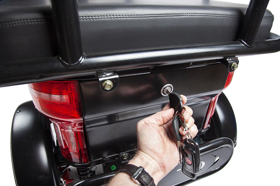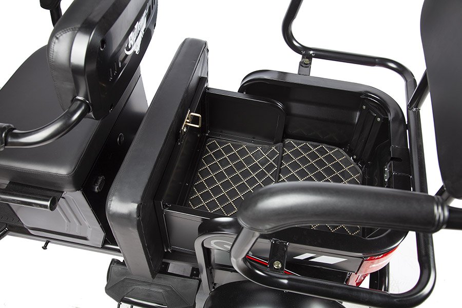 Водитель может изменять габариты техники, делая ее максимально комфортной и эргономичной. Трансформация сиденья увеличивает площадь багажного отделения, что важно при перевозке дополнительных грузов. Для удобства использования трицикл оснащен вместительной корзиной, имеет удобные органы управления, не требует специального обучения для езды.