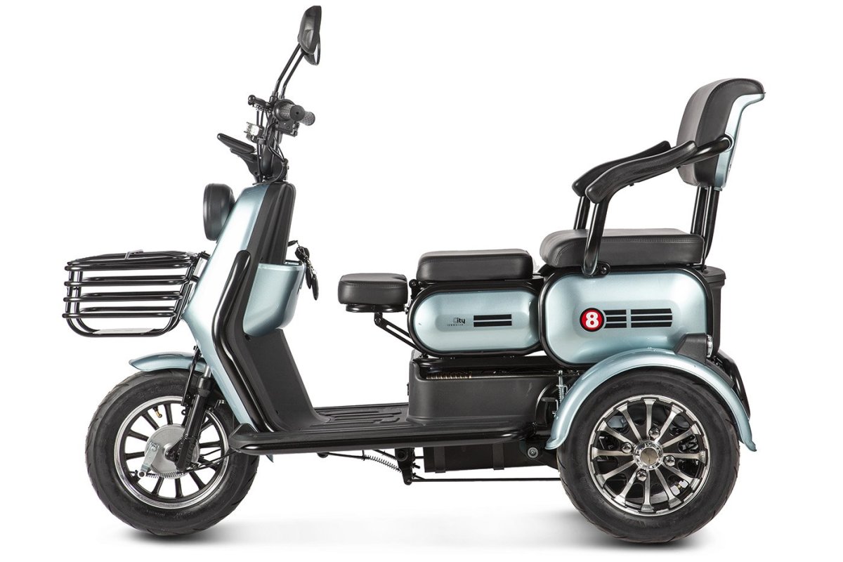 Трицикл также оснащен вместительной металлической корзиной, светодиодной фарой, поворотниками и качественной тормозной системой, что позволяет путешествовать в вечернее время с комфортом и безопасностью.