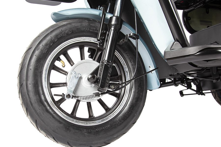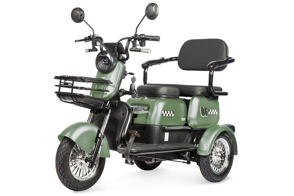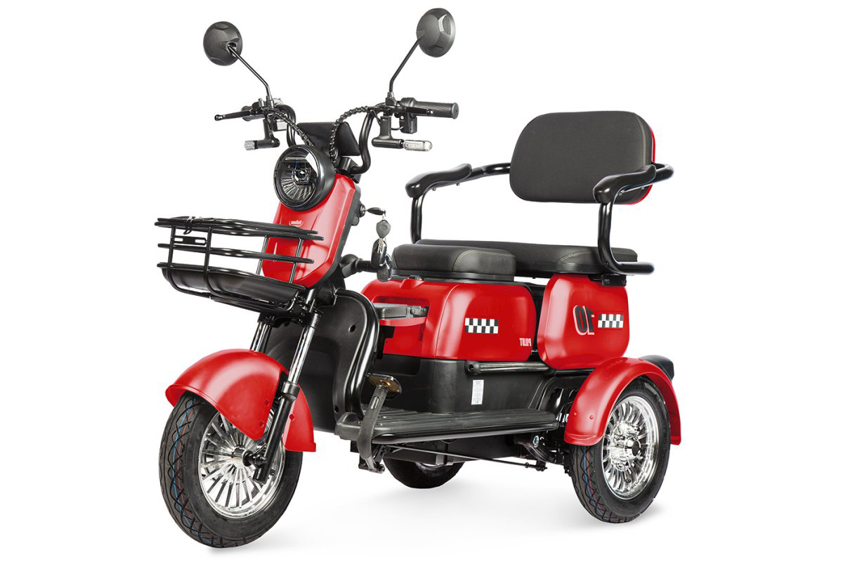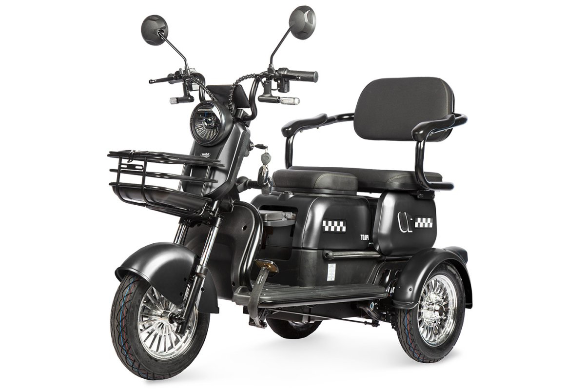 Трицикл оснащен двигателем мощностью 650 Вт, что позволяет ему развивать скорость до 25 км/час, что вполне достаточно для езды по городским улицам. Максимальный пробег на одной подзарядке составляет 30 км.