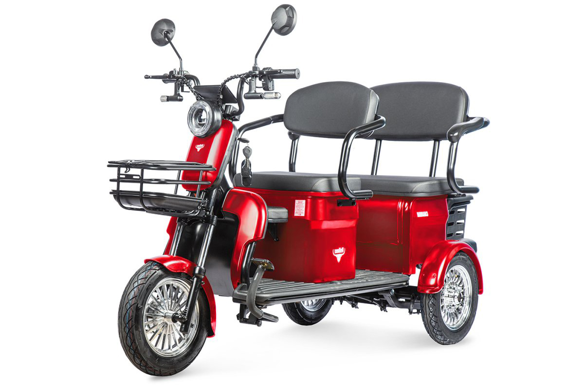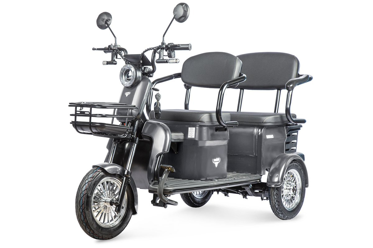 Трицикл отличается высоким уровнем комфорта. Широкое и вместительное сиденье для пассажиров оборудовано спинкой и подлокотниками, что делает его идеальным для осмотра достопримечательностей или отдыха в парковой зоне.