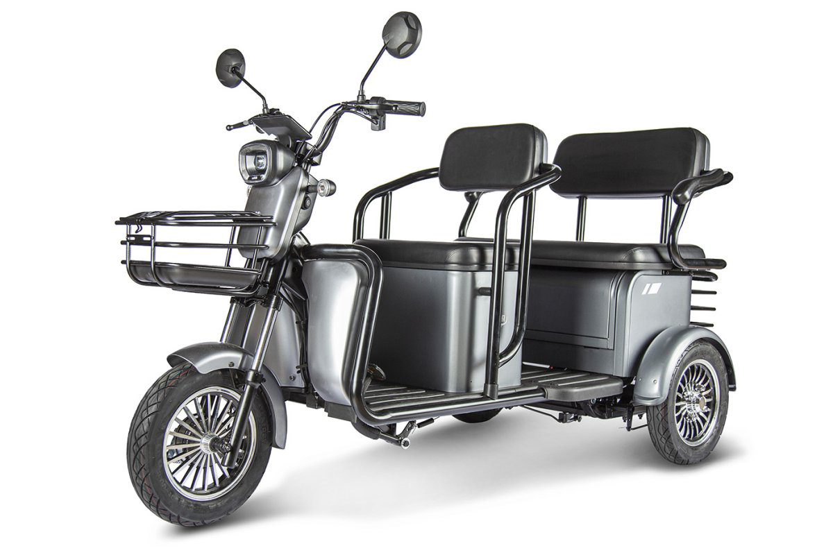 Важно отметить, что все электрические пассажирские трициклы Rutrike адаптированы под российского пользователя. Размеры сидений, свободное пространство между сиденьем и рулем, между вторым рядом сидений, а также общие габариты трицикла рассчитаны на комфортную посадку рослых людей.