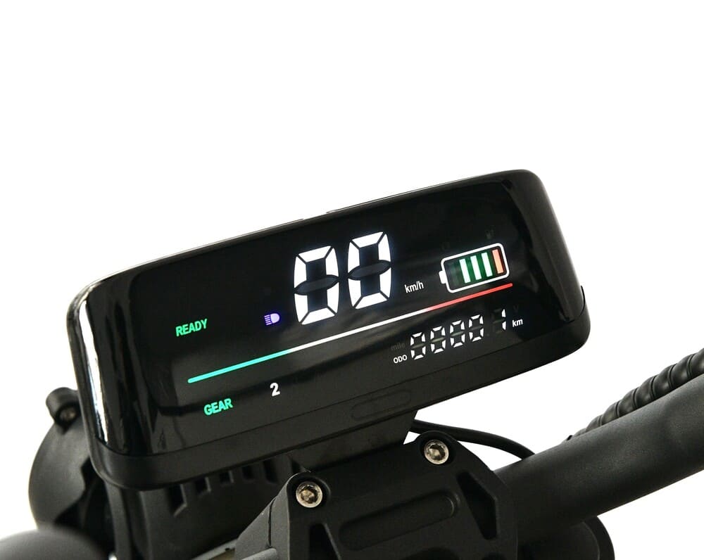 Одной из ключевых особенностей модели является продуманная система безопасности и управляемости. Электротрицикл оснащён дисковыми гидравлическими тормозами, которые можно настраивать под индивидуальные предпочтения, регулируя усилие рукоятки и плавность торможения. Вседорожные шины ALLROAD размером 10” обеспечивают надёжное сцепление с дорогой в любое время года. ЖК-дисплей предоставляет всю необходимую информацию: скорость, уровень заряда батареи, пробег и индикаторы поворотников, делая управление удобным и информативным.
