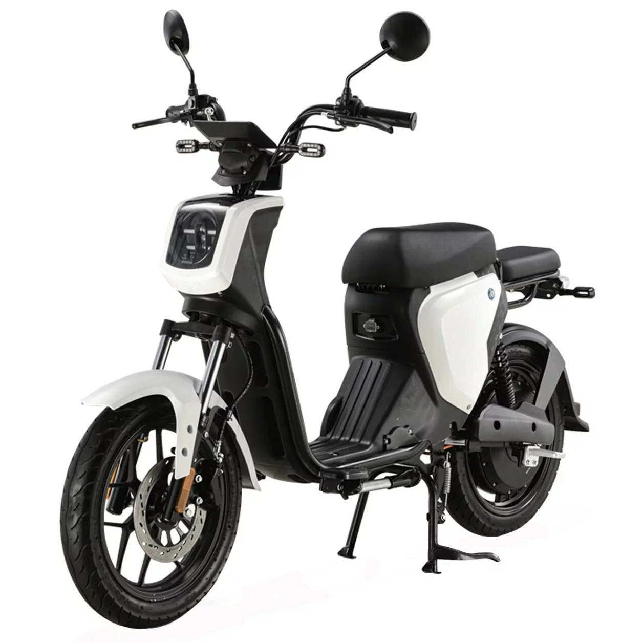 Стильный дизайн скутера привлекает внимание: белый корпус с чёрными акцентами выглядит современно и динамично. Максимальная нагрузка до 150 кг позволяет комфортно перевозить пассажиров или грузы.