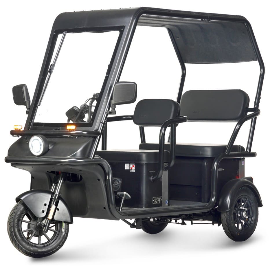 Одной из главных особенностей модели является её продуманный дизайн, направленный на комфорт водителя и пассажира. Просторное двухместное сиденье с удобной спинкой позволяет разместиться с максимальным удобством, а вместительный багажный отсек под задним сиденьем предоставляет достаточно места для личных вещей, продуктов или небольших грузов. Трицикл также оснащён крышей, которая защищает от дождя, снега и палящего солнца, делая поездки комфортными в любую погоду.