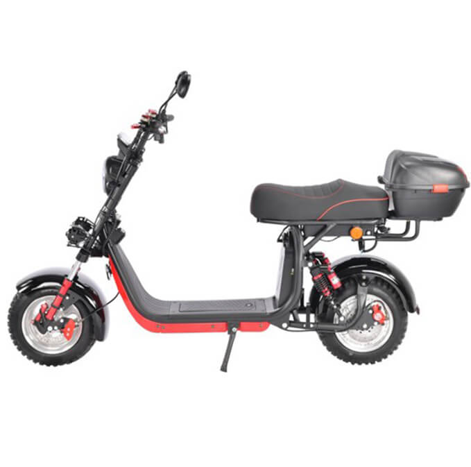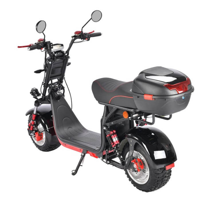 Просторное и мягкое сиденье, обтянутое износостойкой экокожей, обеспечивает комфорт во время длительных поездок. Удобный бардачок под сиденьем предназначен для хранения документов и ценных вещей. Пластиковый бокс для небольших грузов с крышкой позволяет перевозить необходимые вещи без риска их потери или повреждения. Возможность установки спинки для пассажира вместо багажника делает электроскутер ещё более удобным и функциональным.