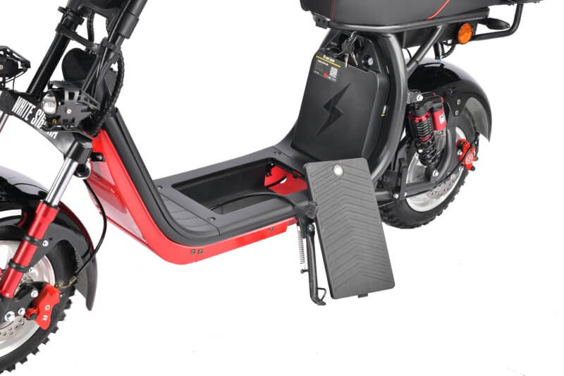 Мощные дисковые гидравлические тормоза обеспечивают надёжное торможение даже на высоких скоростях, что делает электроскутер безопасным для использования. Электроскутер оснащён надёжным аккумулятором Li-Ion 60V 21Ah с системой защиты от перезаряда и перегрузки. Также есть дополнительное место для второго аккумулятора, если вам нужно увеличить запас хода.