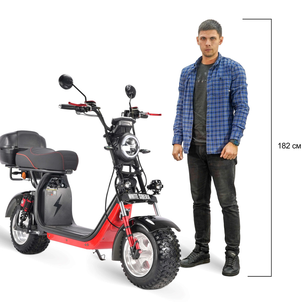 Яркая LED фара увеличивает видимость на дороге, обеспечивая безопасное передвижение в тёмное время суток. Бортовой компьютер с крупным дисплеем предоставляет всю необходимую информацию о скорости, заряде аккумулятора и других параметрах. Максимальная скорость до 60 км/ч и запас хода до 60 км делают этот электроскутер идеальным выбором для городских поездок и коротких путешествий.