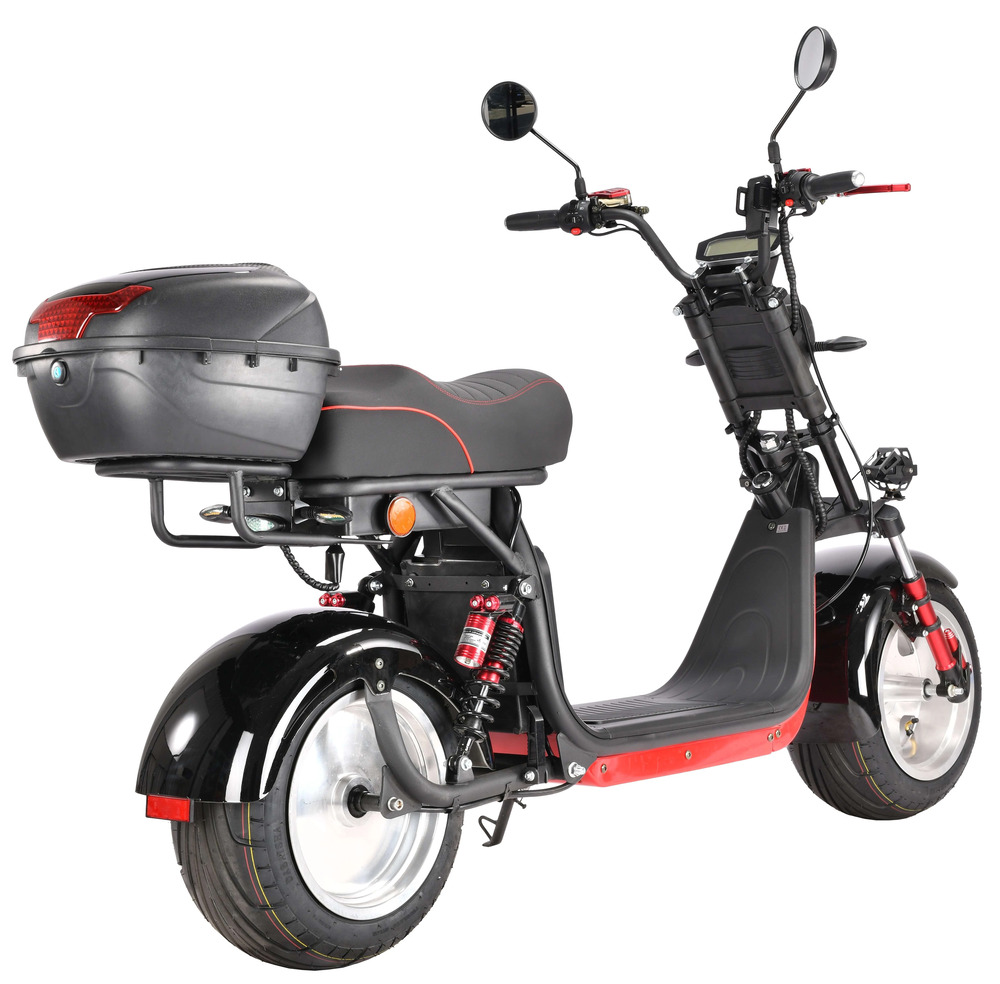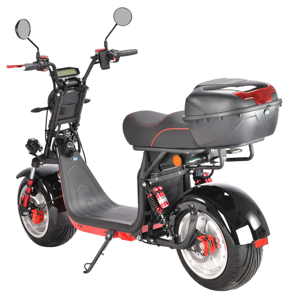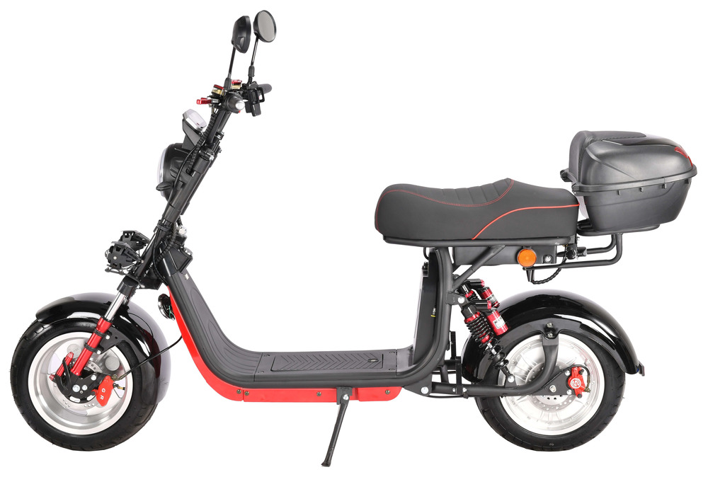 Благодаря мотоциклетной подвеске и надёжным гидравлическим тормозам скутер обеспечивает комфортное и безопасное передвижение. Аккумулятор Li-Ion 60V 21Ah с балансировочной платой и возможностью установки второго аккумулятора позволяет проехать значительное расстояние без подзарядки.
