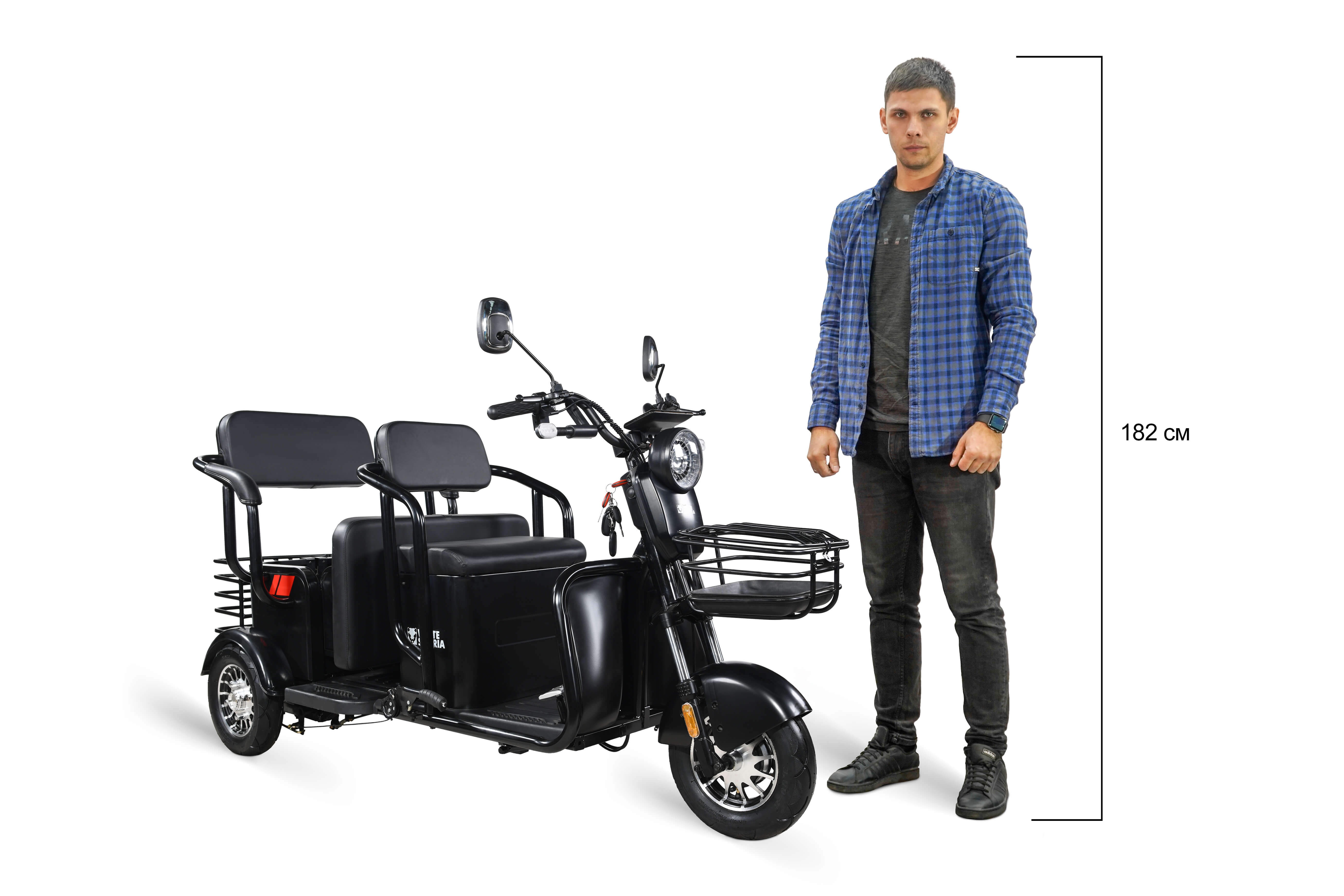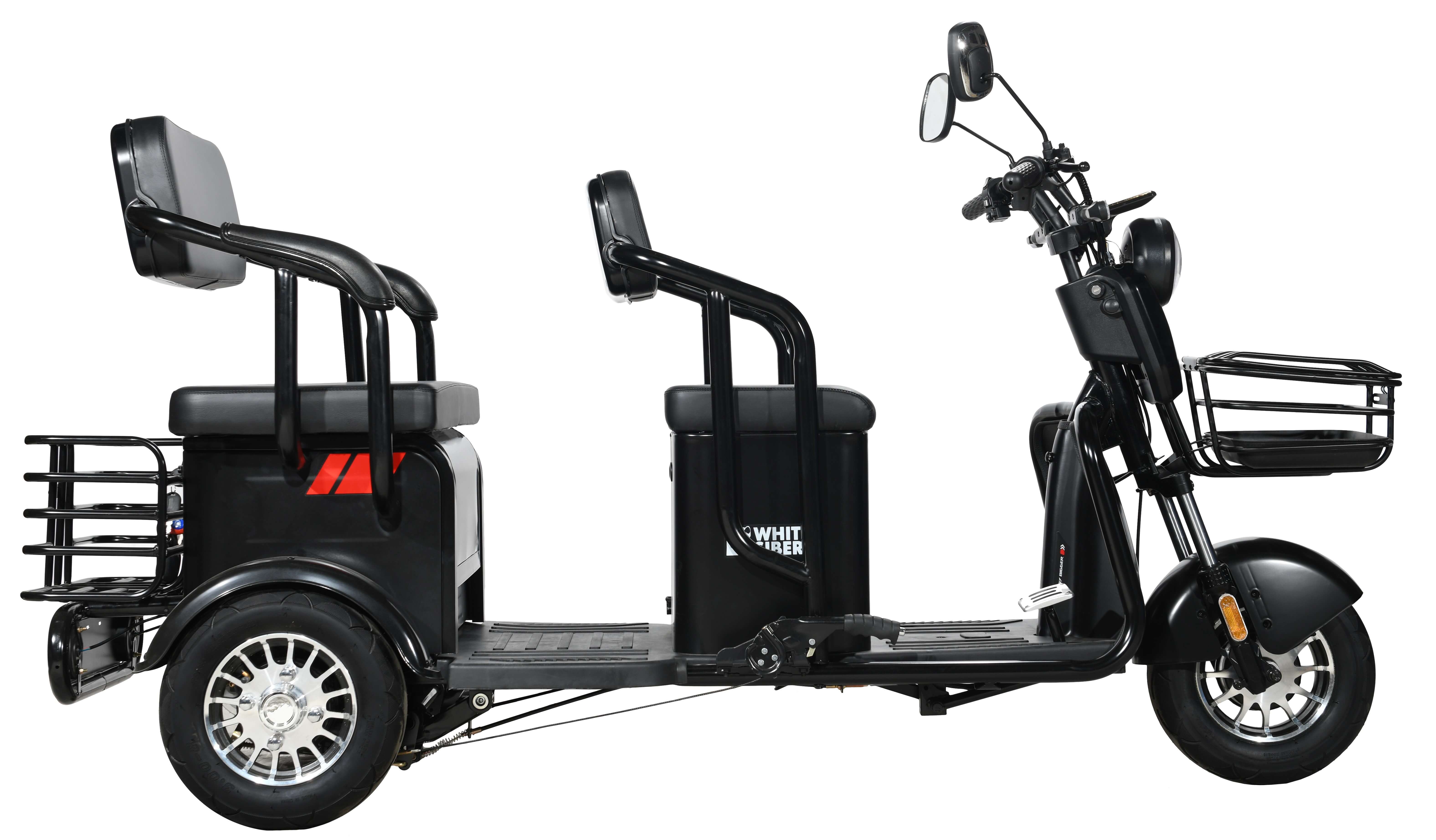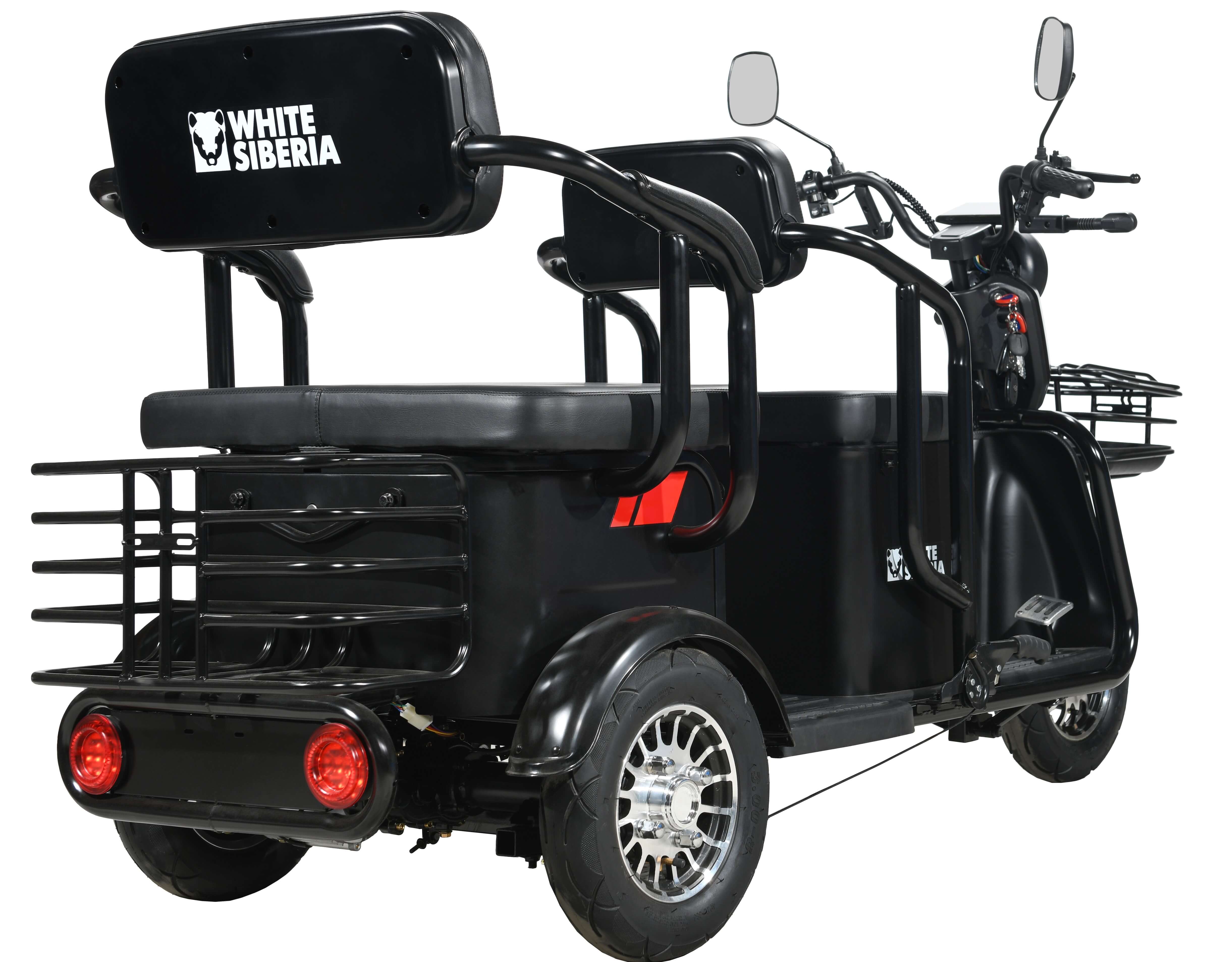 Электротрицикл WHITE SIBERIA SIBTRIKE R 2000W представляет собой пассажирский электрический трицикл, разработанный для взрослых водителей и перевозки пассажиров, а также для небольших грузовых перевозок. Этот трицикл идеально подходит для семейных прогулок по российским санаториям, паркам и набережным, а также для решения различных хозяйственных задач.
