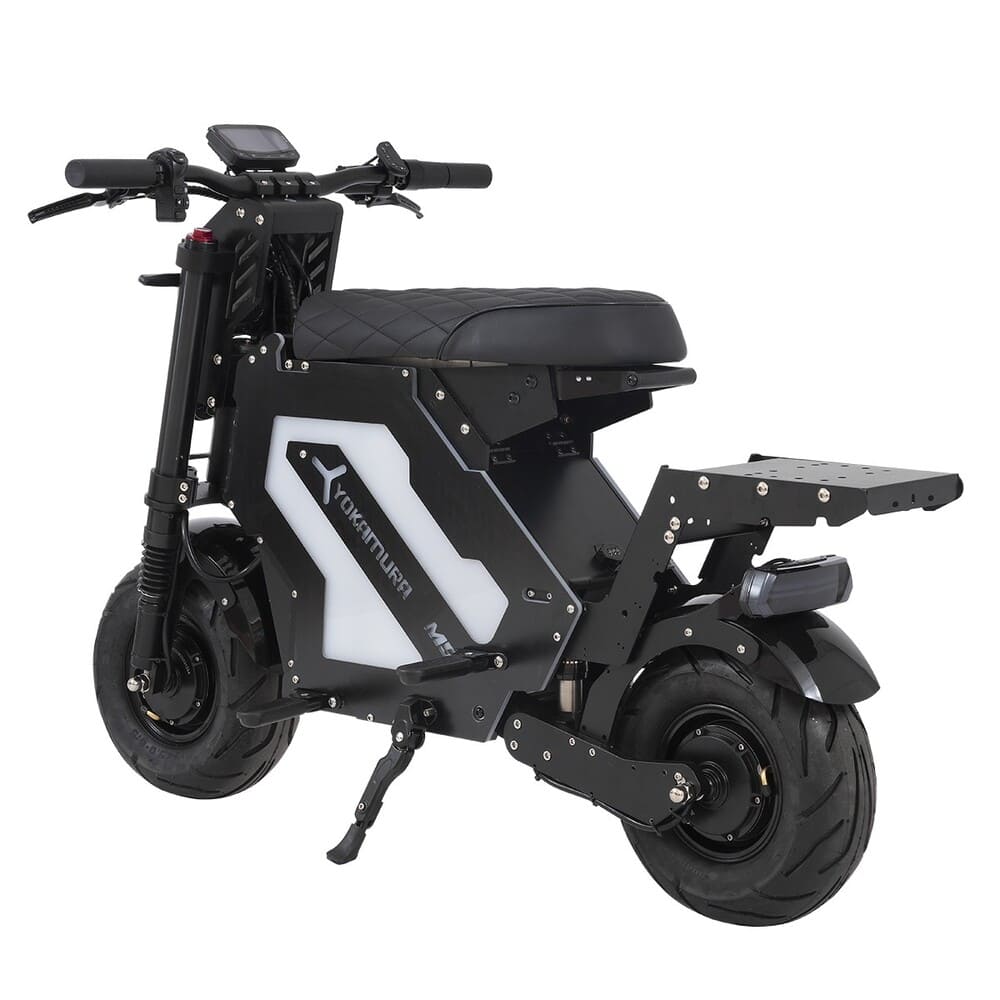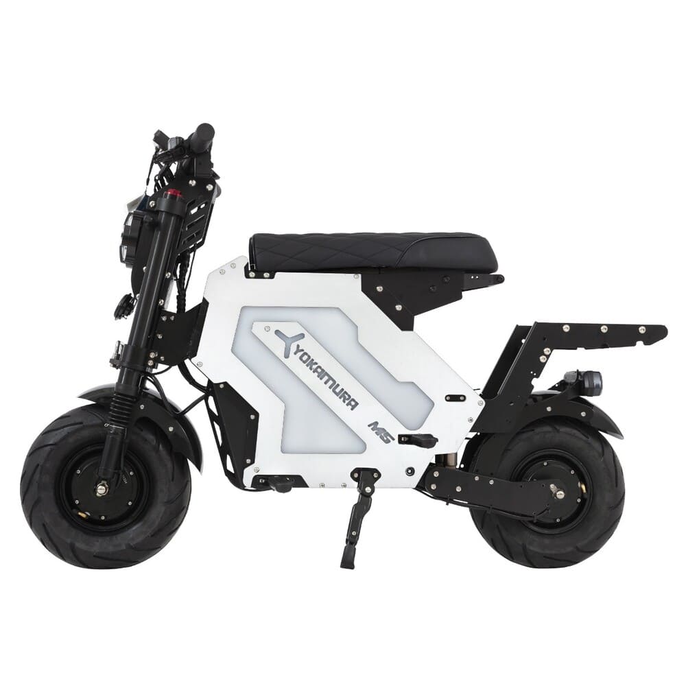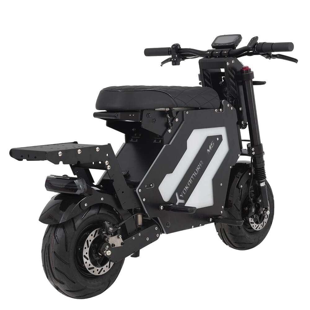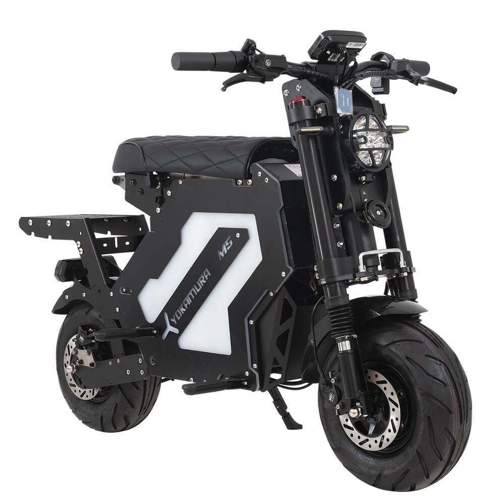 Диаметр колес 13 дюймов способствует маневренности и устойчивости, а прочная конструкция выдерживает значительные нагрузки. Общий вес электроскутера составляет 75 кг, что говорит о его надежности и внушительных технических возможностях. Yokamura M5 — это не просто средство передвижения, а стильный и технологичный транспорт для современных пользователей.