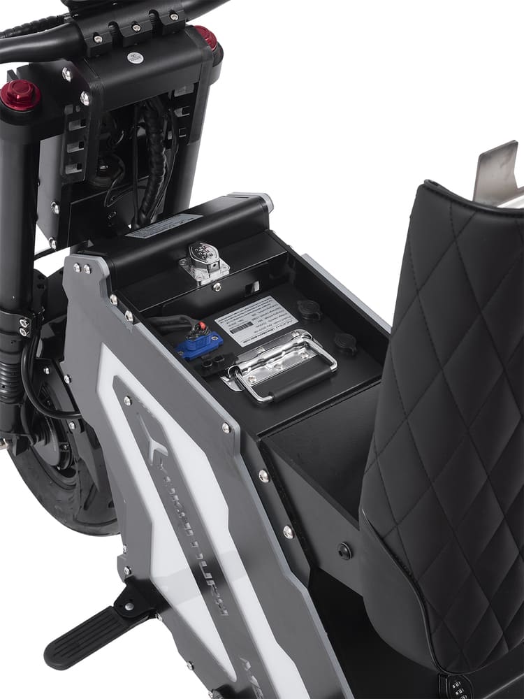 Сердцем устройства стал аккумулятор с напряжением 72 В и емкостью 50 Ач, обеспечивающий внушительный запас хода. Для безопасной и комфортной езды предусмотрены гидравлические дисковые тормоза, эффективно справляющиеся с любыми ситуациями. Также модель оснащена амортизационной подвеской, которая смягчает неровности дорожного покрытия и делает поездки более приятными.