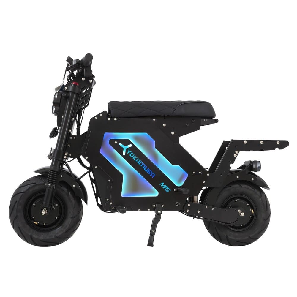 Yokamura M5 предлагает широкие возможности для персонализации и управления. Через фирменное мобильное приложение можно настраивать параметры работы электроскутера, следить за состоянием батареи и управлять функциями. Дополнительно доступны Bluetooth-колонка, декоративная подсветка и сменные панели корпуса, которые позволяют индивидуализировать внешний вид. Функциональное освещение обеспечивает безопасность в темное время суток.